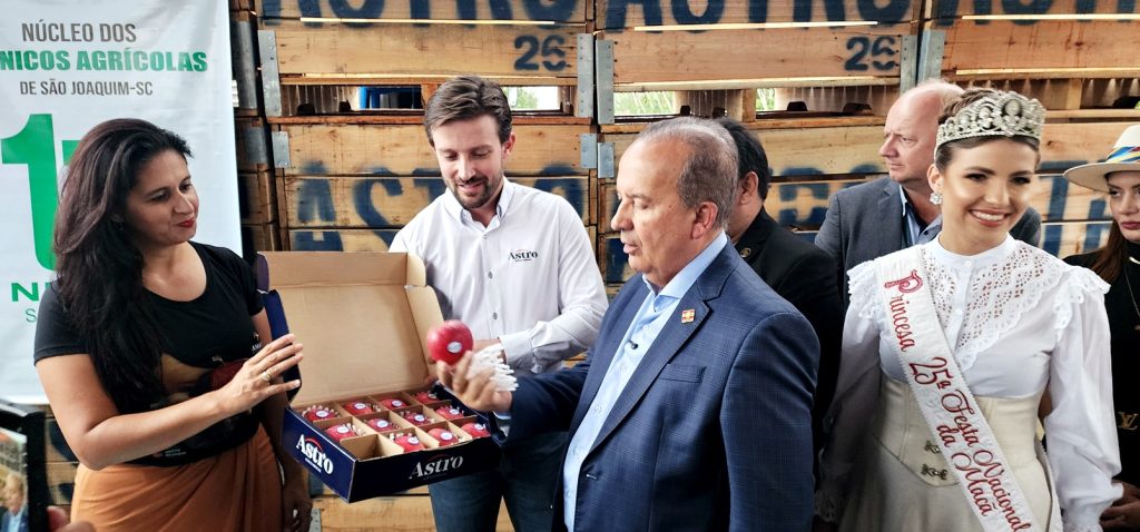 O ato reforça a força da fruticultura catarinense e destaca o protagonismo de São Joaquim, reconhecido nacionalmente pela qualidade e tradição na produção de maçãs.