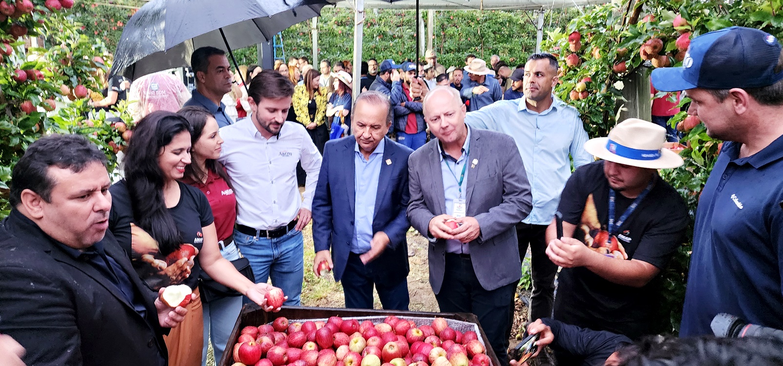 A presidente também destacou a qualidade da safra e reconheceu o papel de instituições e investimentos públicos no fortalecimento do setor, citando a importância da implantação do sistema de combate ao granizo para a proteção dos pomares.