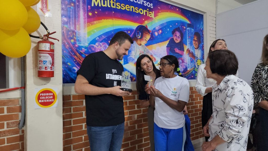 A diretora da instituição, Luciane dos Santos Velho, destacou a importância do novo ambiente para o atendimento especializado. “A gente tá muito feliz de poder inaugurar esse espaço com essa sala de recurso multissensorial na APAE de São Joaquim, porque ela vai beneficiar o nosso público-alvo, os nossos alunos, pessoas com TEA, pessoas com deficiência, trazendo mais segurança pro trabalho dos profissionais. Além da sala, tivemos a capacitação de vinte profissionais. Hoje podemos dizer que o nosso trabalho está direcionado com um plano educacional individualizado pra cada aluno, e essa sala vai facilitar o desenvolvimento deles”, afirmou.