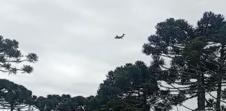 Avião KC-390 da Aeronáutica realiza série de voos sobre a Serra...