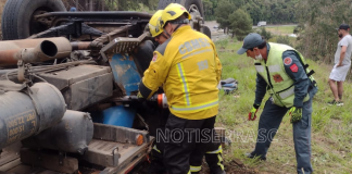 Motorista morre em capotamento de caminhão na BR-282, em Alfredo Wagner