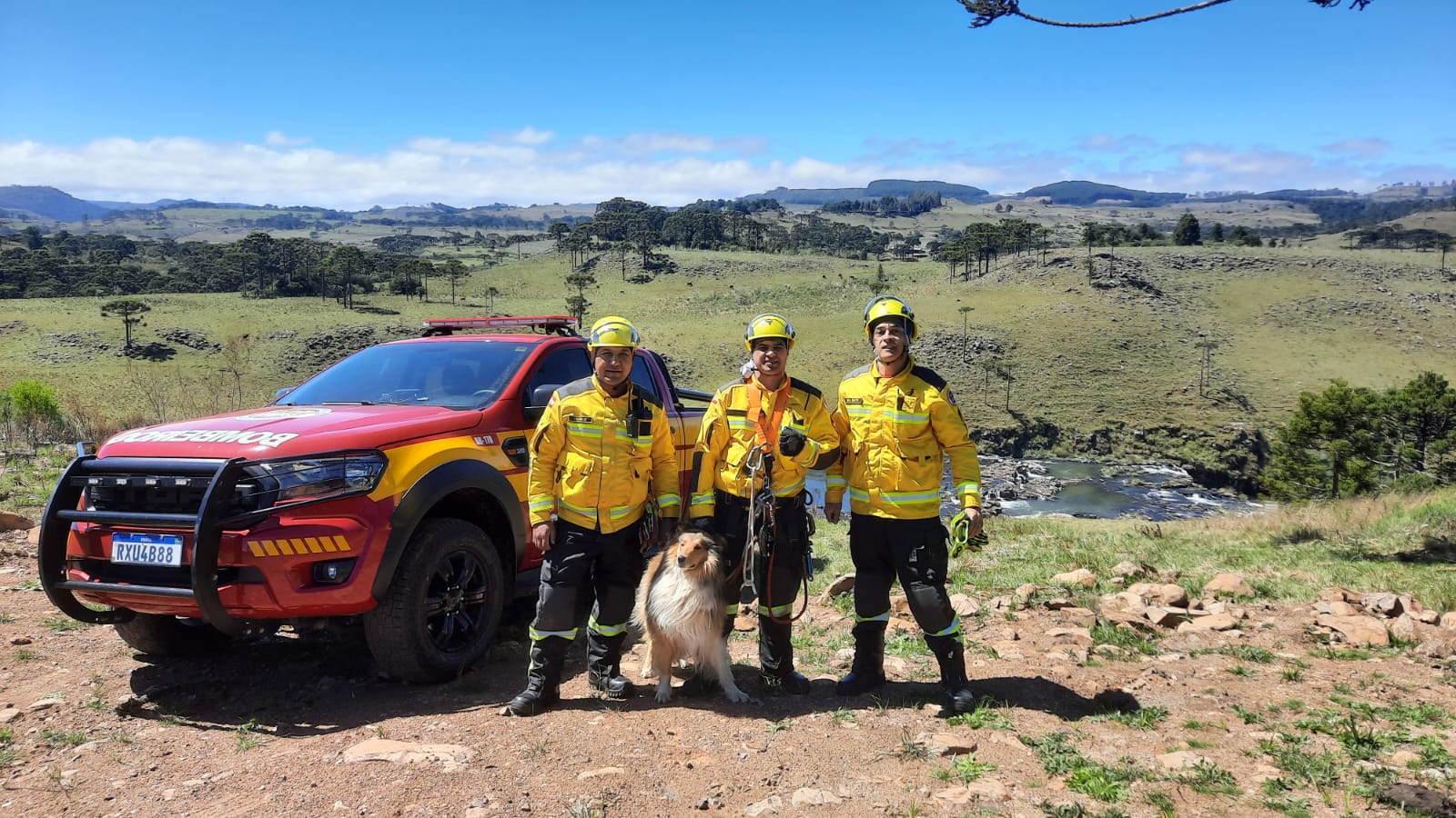 Na manhã desta sexta-feira (26), por volta das 9h20min, o 5º Batalhão de Bombeiros Militar, com guarnição de Bom Jardim da Serra, realizou o resgate de um cão que havia caído em uma cachoeira na SC-390, no trecho conhecido como Salto do Rio Pelotas. A operação contou com a viatura AR-178.