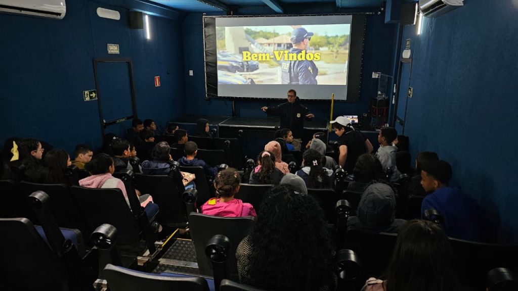 A Carreta Cinema da Polícia Rodoviária Federal (PRF) está em São Joaquim pela primeira vez, em uma ação inédita promovida em parceria com o Departamento Municipal de Trânsito (Demtran). A estrutura, instalada em frente à Praça Cezário Amarante, oferece quatro sessões diárias até sexta-feira, dia 21, para alunos da rede municipal, estadual e particular de ensino.