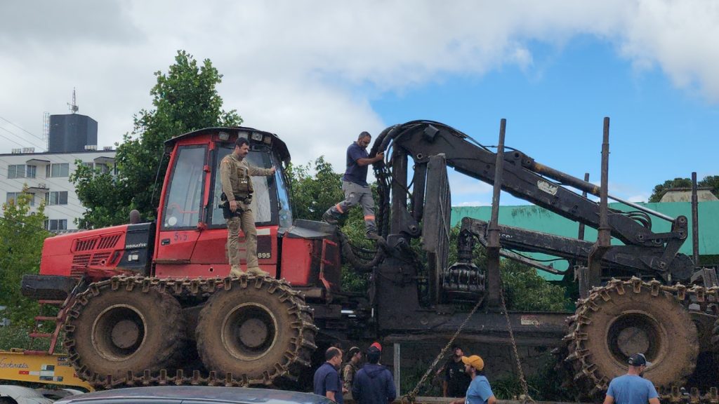 No início da tarde desta sexta-feira (20), um caminhão carreta que transportava uma máquina foi interceptado por moradores em São Joaquim após causar danos à rede elétrica e de telecomunicações no bairro Jardim Minuano. O veículo teria arrebentado fios e quebrado postes ao circular pela região.
