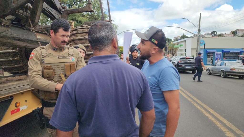 No início da tarde desta sexta-feira (20), um caminhão carreta que transportava uma máquina foi interceptado por moradores em São Joaquim após causar danos à rede elétrica e de telecomunicações no bairro Jardim Minuano. O veículo teria arrebentado fios e quebrado postes ao circular pela região.