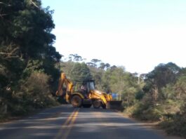Defesa Civil de São Joaquim faz serviço de limpeza na SC 390 após vendaval