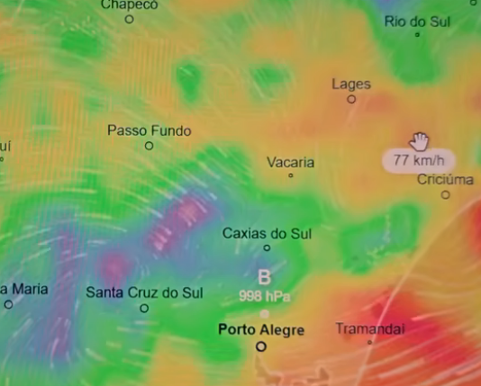 Atualização sobre o ciclone que avança pelo Sul do Brasil