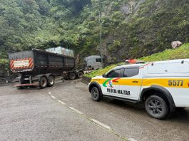 Caminhão fora do padrão provoca interdição na Serra do Rio do Rastro