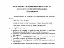 EDITAL DE CONVOCAÇÃO PARA A ASSEMBLEIA GERAL DA COOPERATIVA CARNES NOBRES SÃO JOAQUIM COOPERNOVILHOS