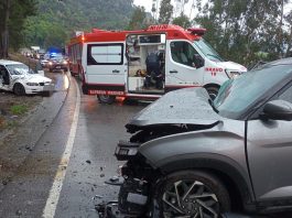 Colisão entre dois carros deixa feridos na BR-282 em Alfredo Wagner