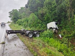 Saída de pista provoca danos materiais na SC-114, em Painel