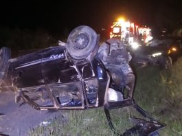 Colisão traseira seguida de capotamento deixa três feridos na BR-282 em Bom Retiro