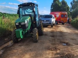 Motociclista fica ferido após colisão com trator no interior de São Joaquim