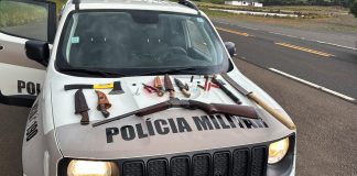 Polícia Militar aborda veículo suspeito e apreende arma, munições e objetos...