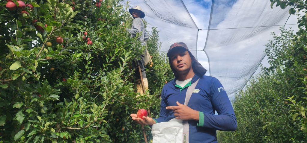 João afirma ainda que tem recebido apoio no dia a dia e que a adaptação tem sido tranquila. “A gente tá sendo bem tratado. Quando precisa, o pessoal chega junto. É a primeira vez colhendo maçã assim, no pé, e tô gostando bastante. Não tá sendo tão difícil como eu imaginei.”