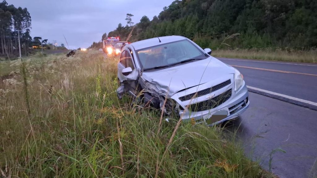 No local, foi confirmada uma colisão entre um Chevrolet Agile, com placas de Lages, e um Peugeot 2008. No Agile estavam três ocupantes — um homem de 42 anos, uma mulher de 48 anos e uma criança de 10 anos. Todos estavam conscientes, caminhando pelo local e sem ferimentos aparentes, optando por recusar encaminhamento ao hospital.