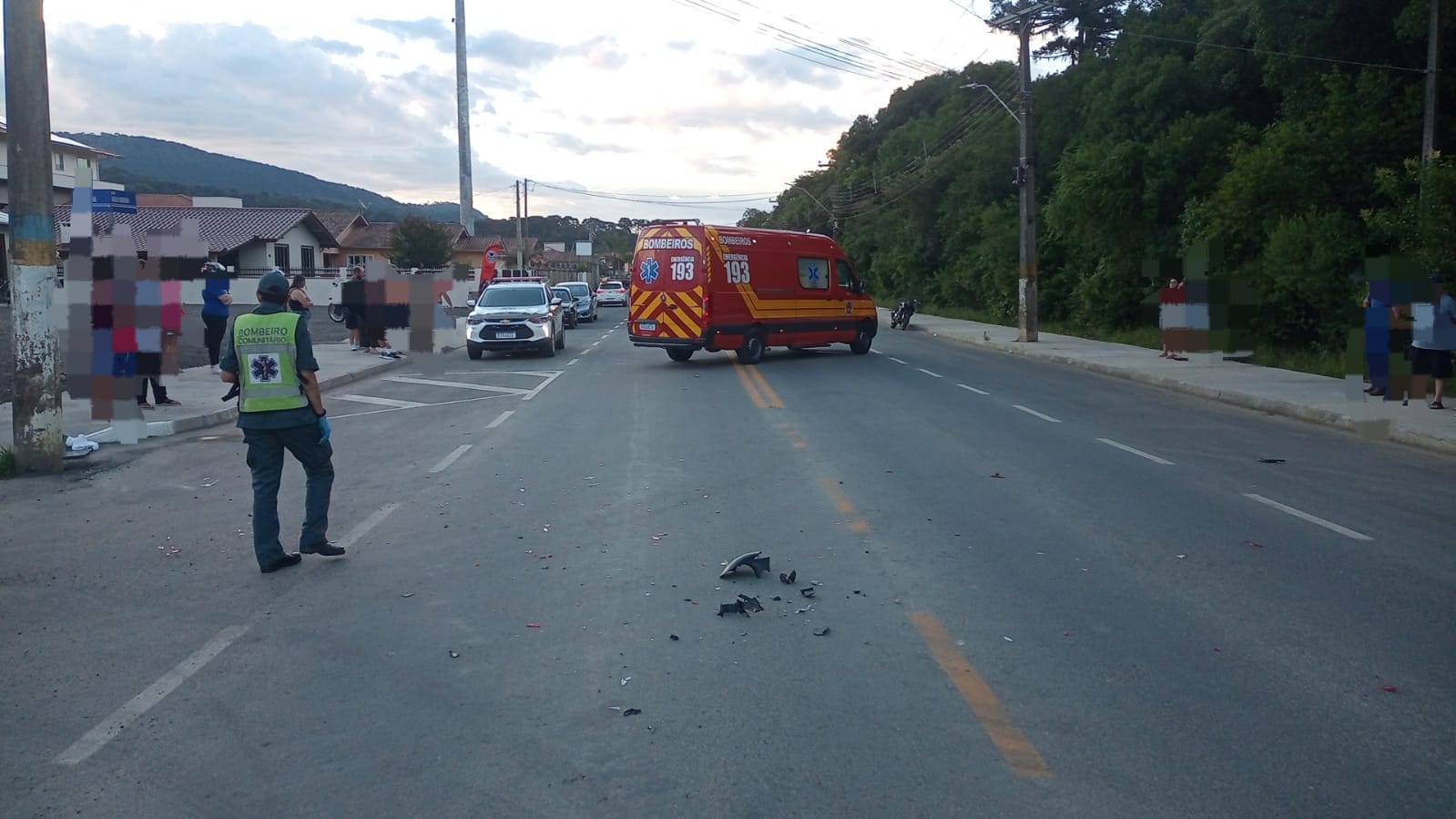 A ocorrência foi atendida pelo Corpo de Bombeiros Militar de Urubici, com a viatura ASU-481. No local, a guarnição confirmou que se tratava de uma colisão traseira entre uma motocicleta e um automóvel Fiat Siena, de cor prata.