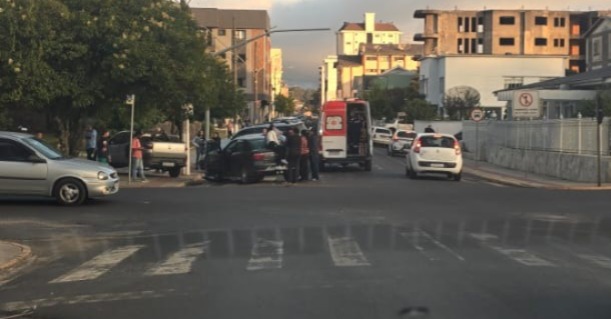 Uma colisão entre veículos registrada no final da tarde desta sexta-feira (23), na esquina do Sicredi, em São Joaquim, deixou duas pessoas feridas.