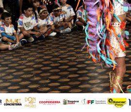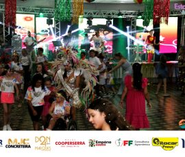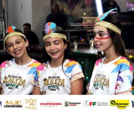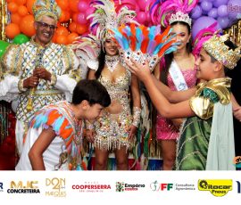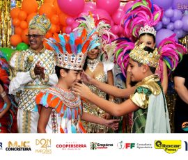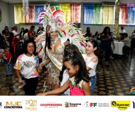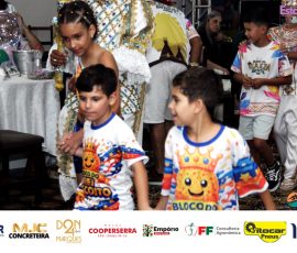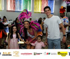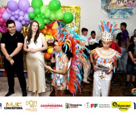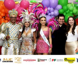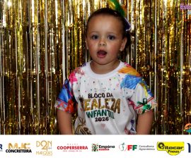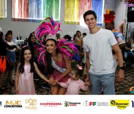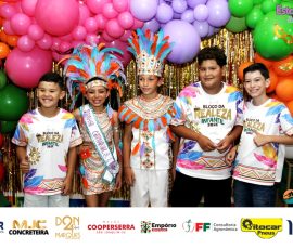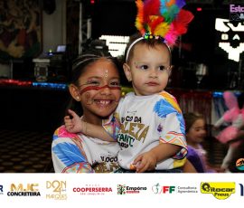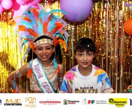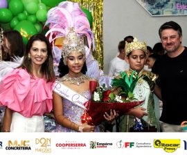 A Realeza Infantil do Carnaval 2026 também marcou presença, convidando as crianças para entrar no ritmo da festa. Ana Luisa e Enrico animaram o público com seus blocos, incentivando a participação dos pequenos foliões.