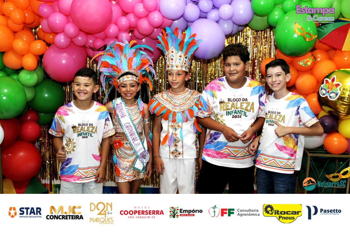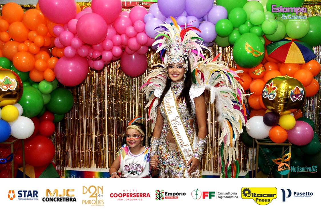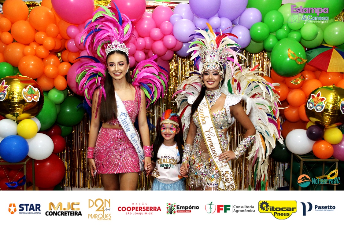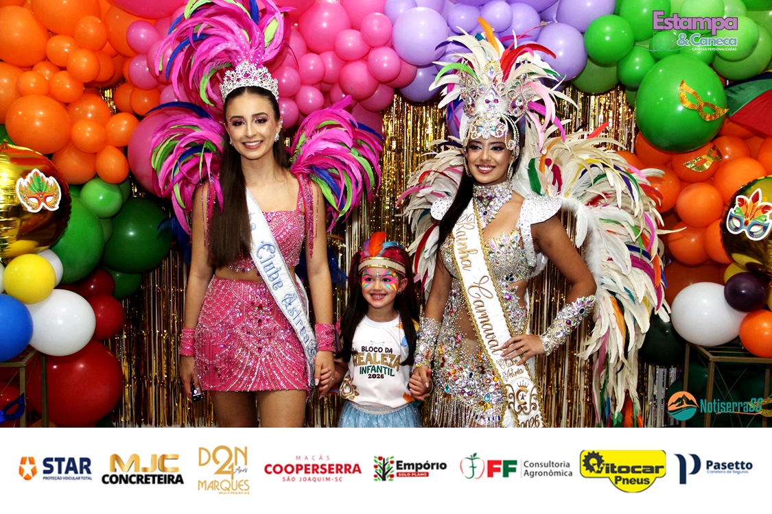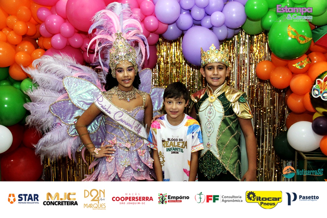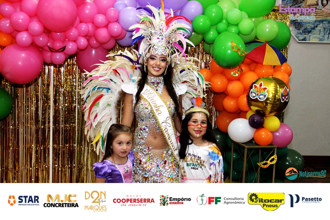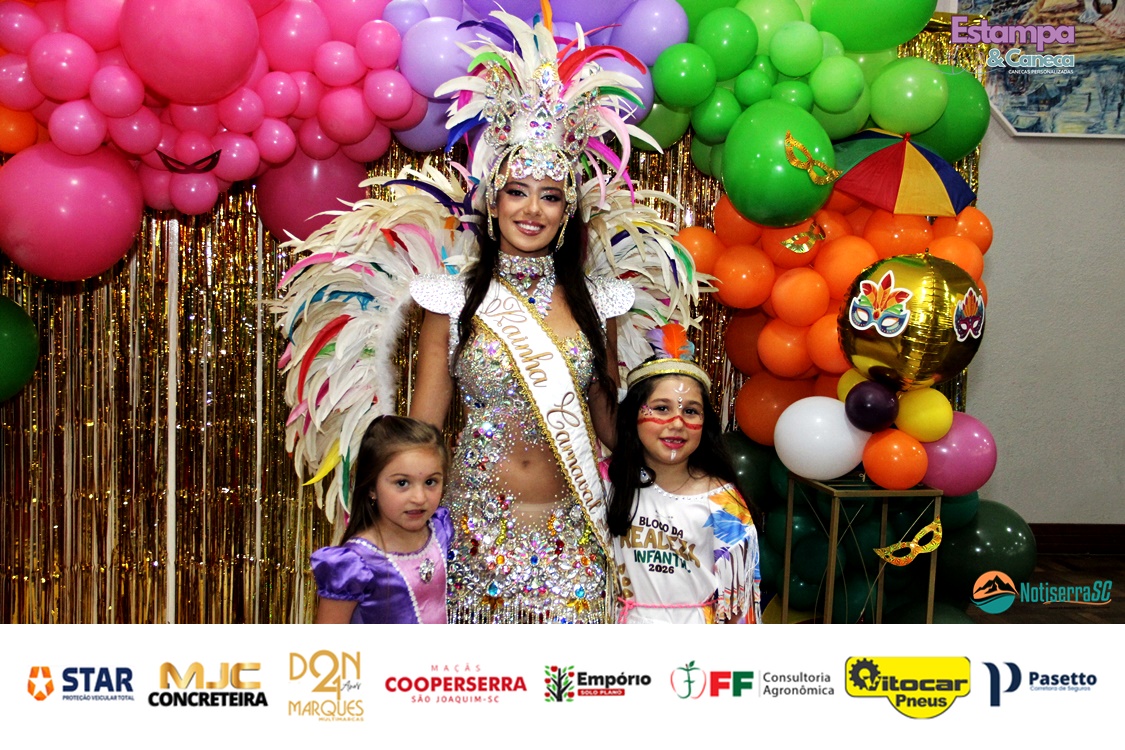 A Realeza Infantil do Carnaval 2026 também marcou presença, convidando as crianças para entrar no ritmo da festa. Ana Luisa e Enrico animaram o público com seus blocos, incentivando a participação dos pequenos foliões.