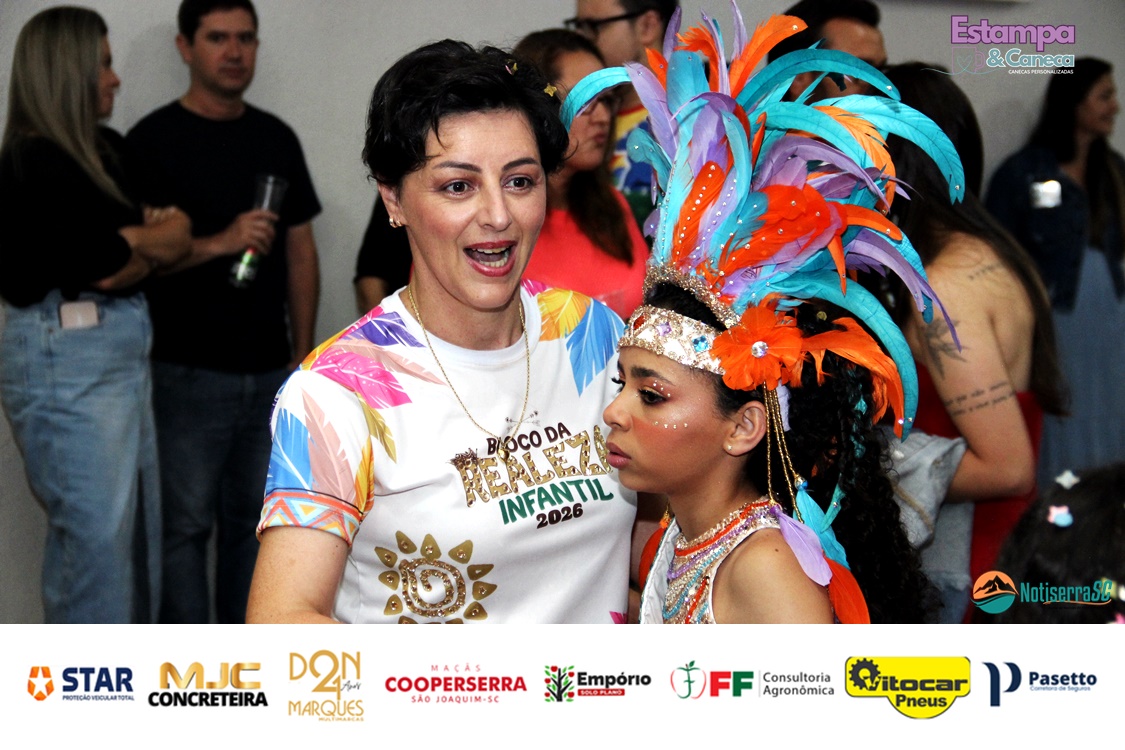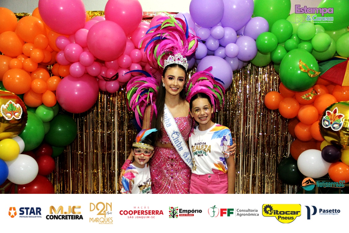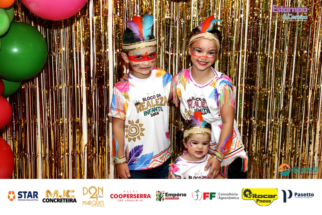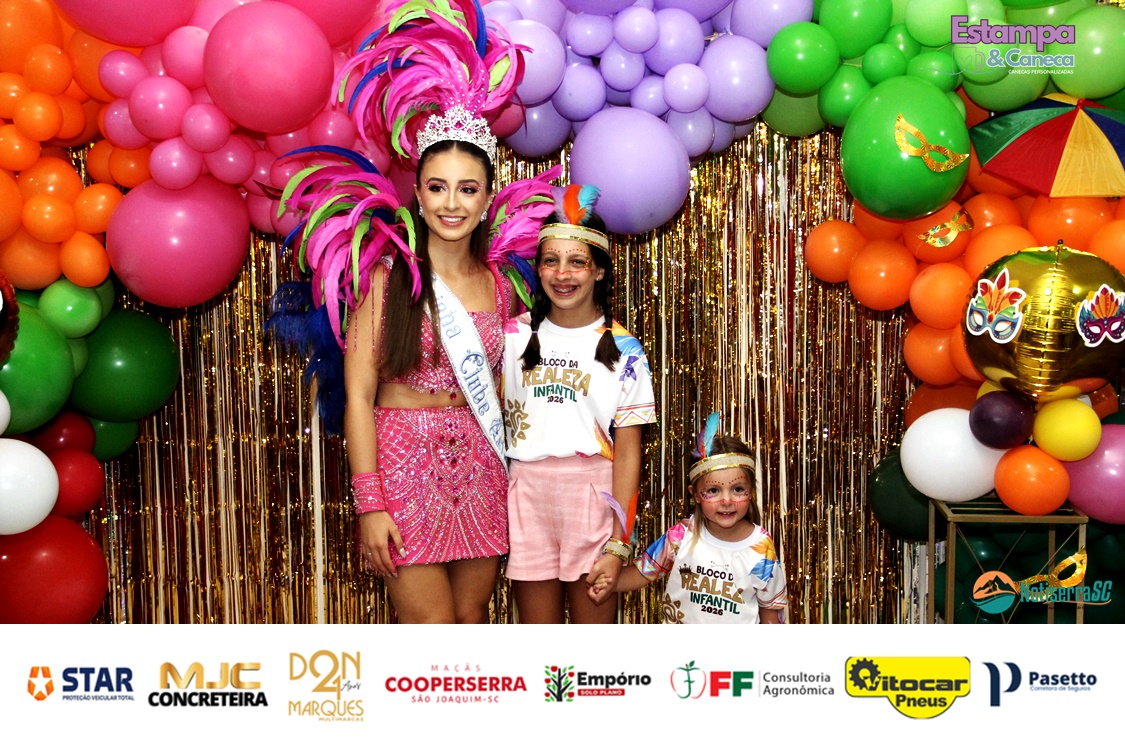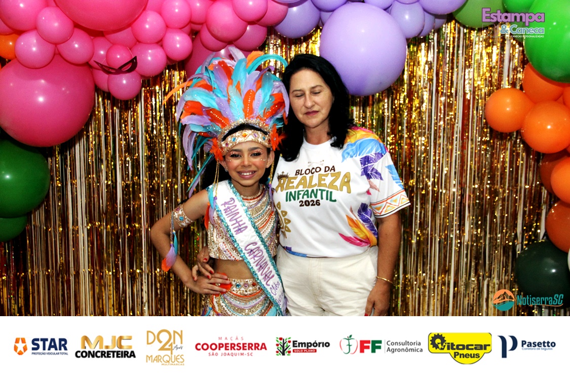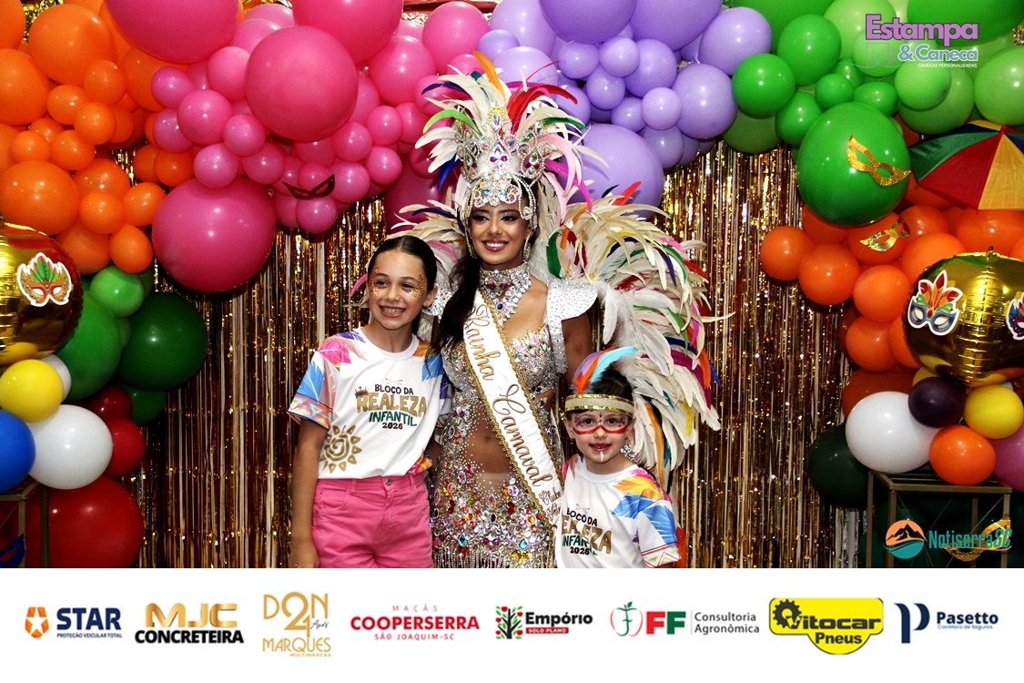 A Realeza Infantil do Carnaval 2026 também marcou presença, convidando as crianças para entrar no ritmo da festa. Ana Luisa e Enrico animaram o público com seus blocos, incentivando a participação dos pequenos foliões.
