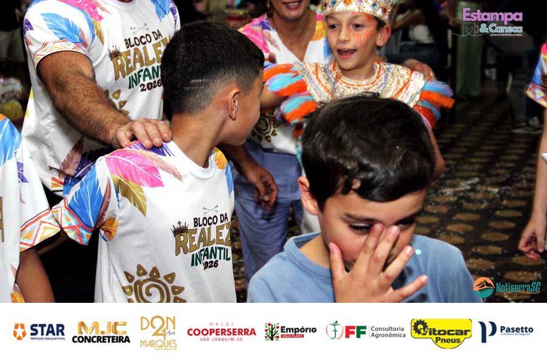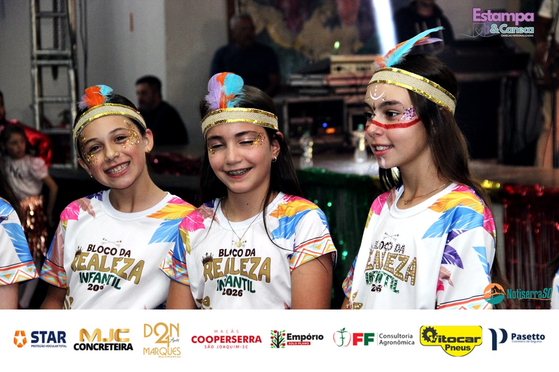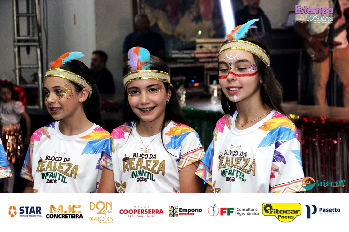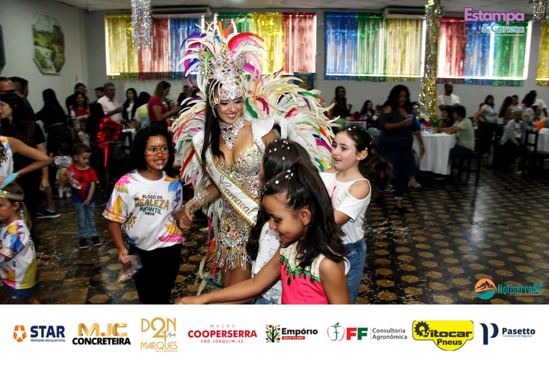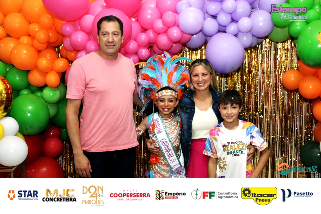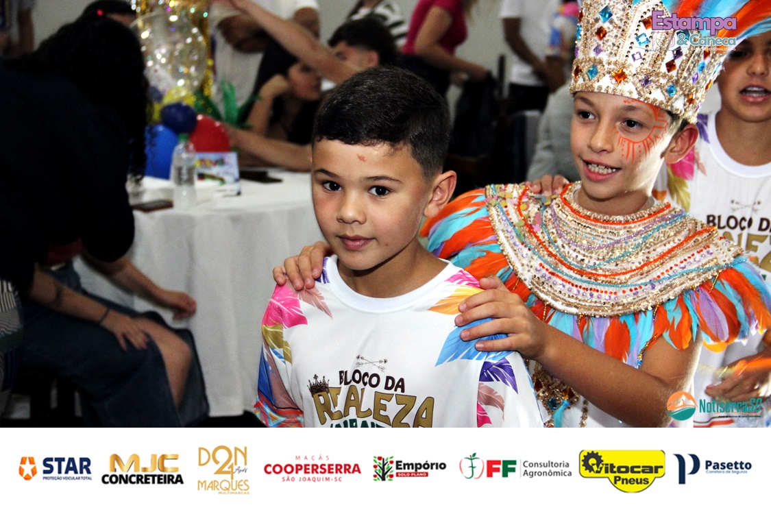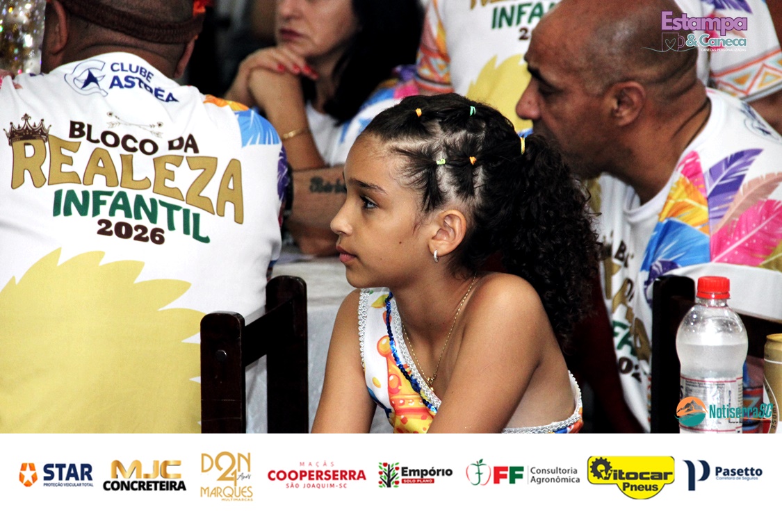 A Realeza Infantil do Carnaval 2026 também marcou presença, convidando as crianças para entrar no ritmo da festa. Ana Luisa e Enrico animaram o público com seus blocos, incentivando a participação dos pequenos foliões.