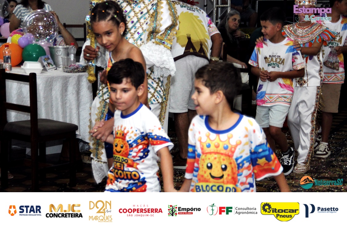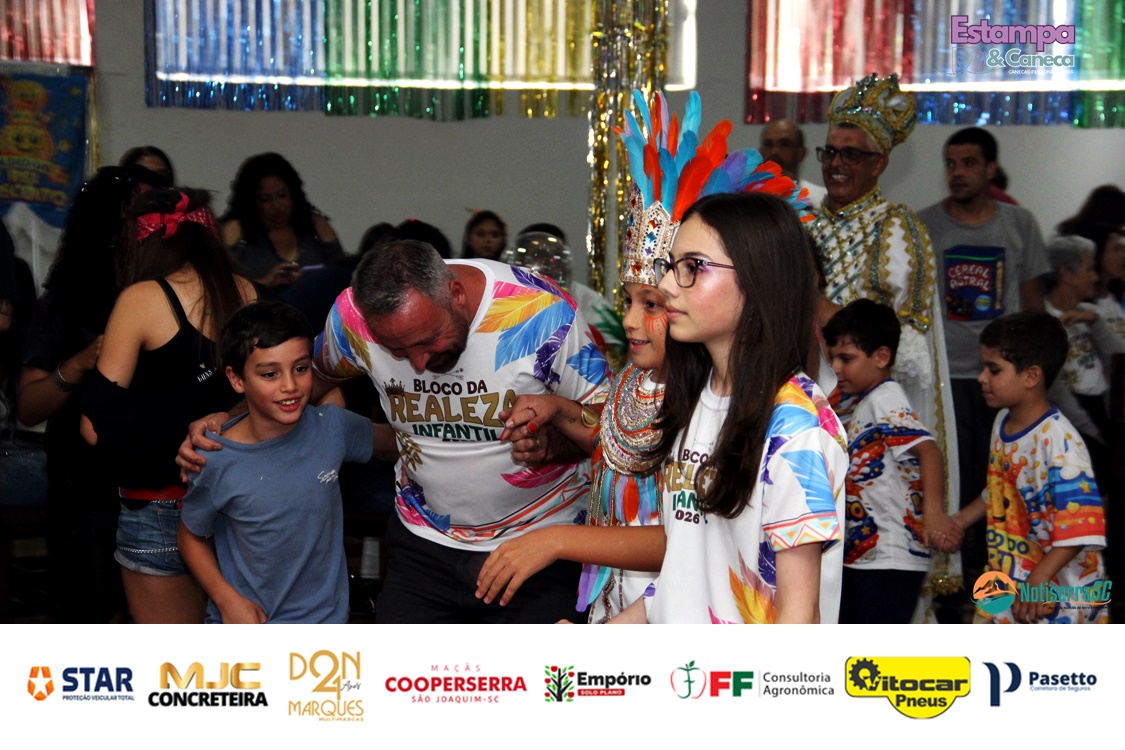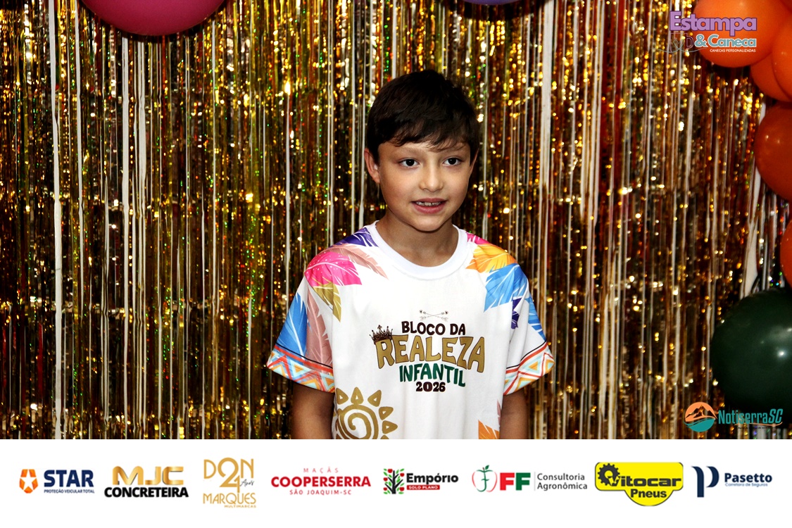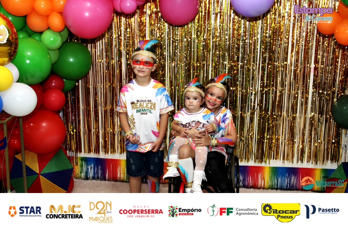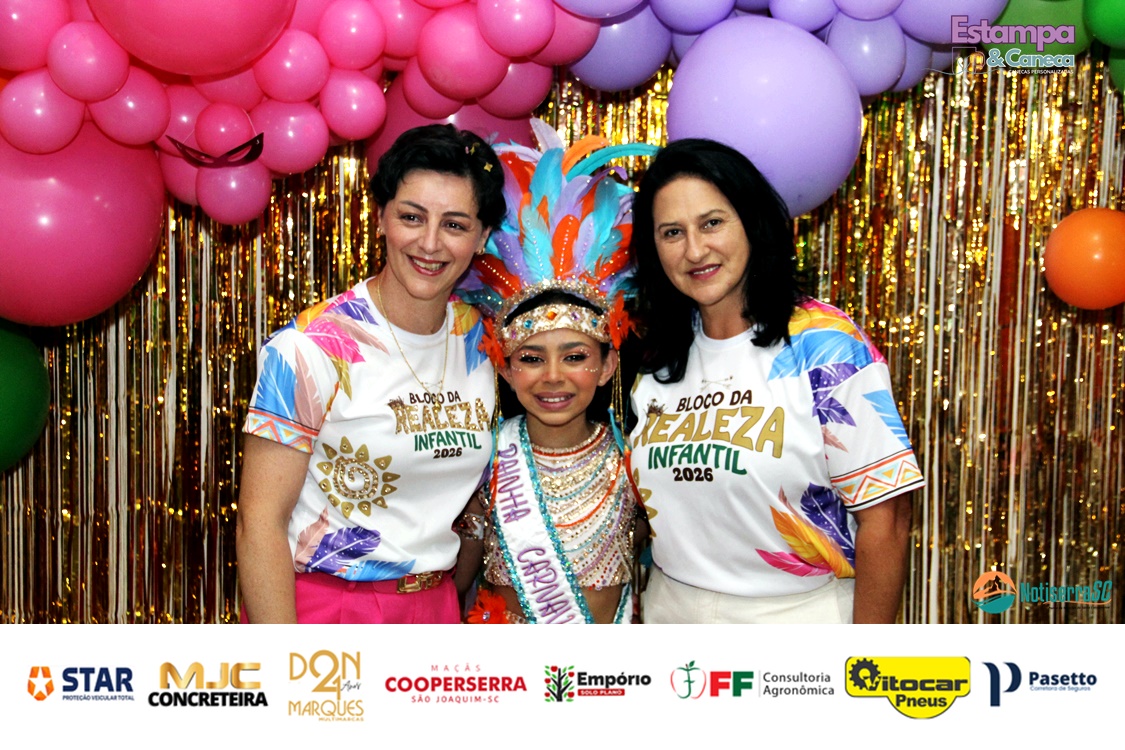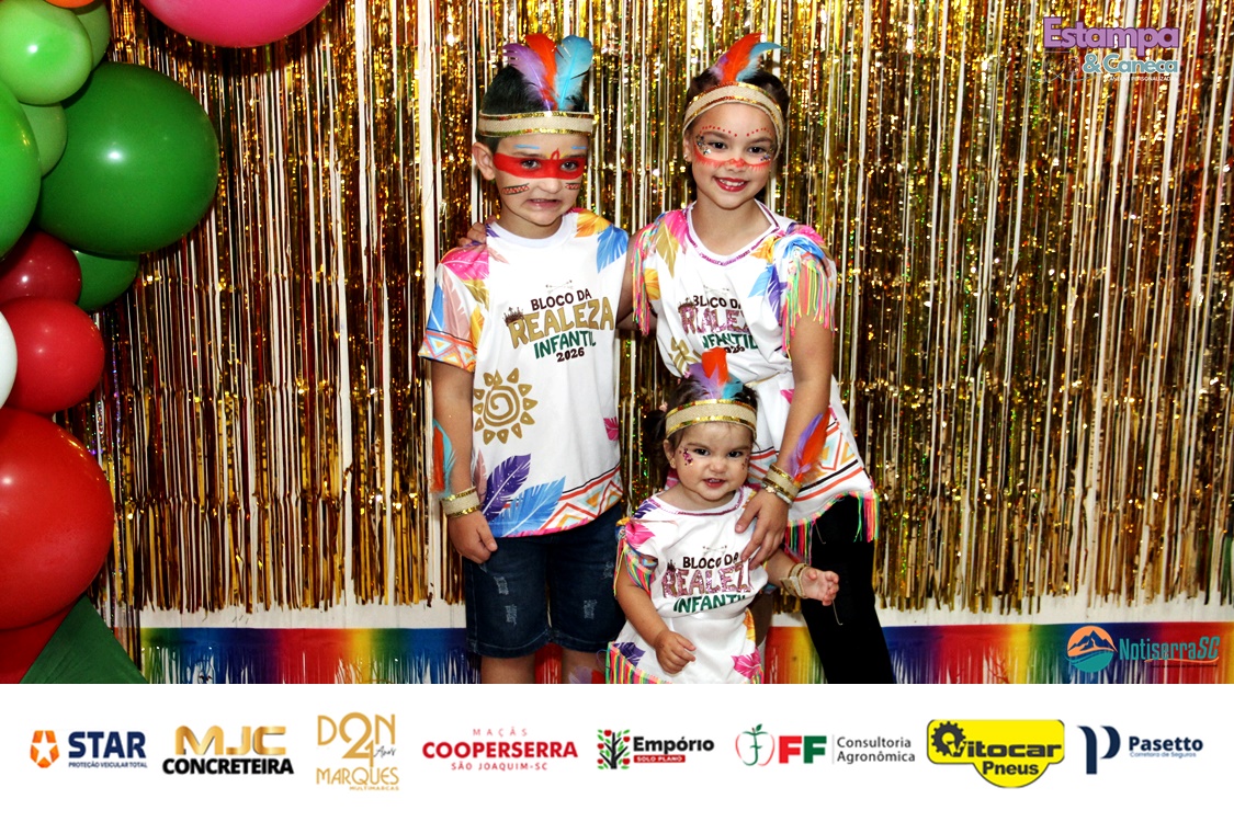 A Realeza Infantil do Carnaval 2026 também marcou presença, convidando as crianças para entrar no ritmo da festa. Ana Luisa e Enrico animaram o público com seus blocos, incentivando a participação dos pequenos foliões.