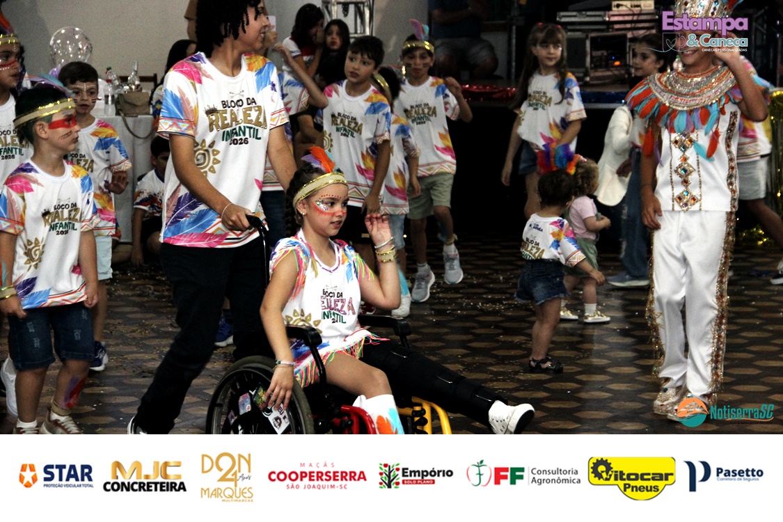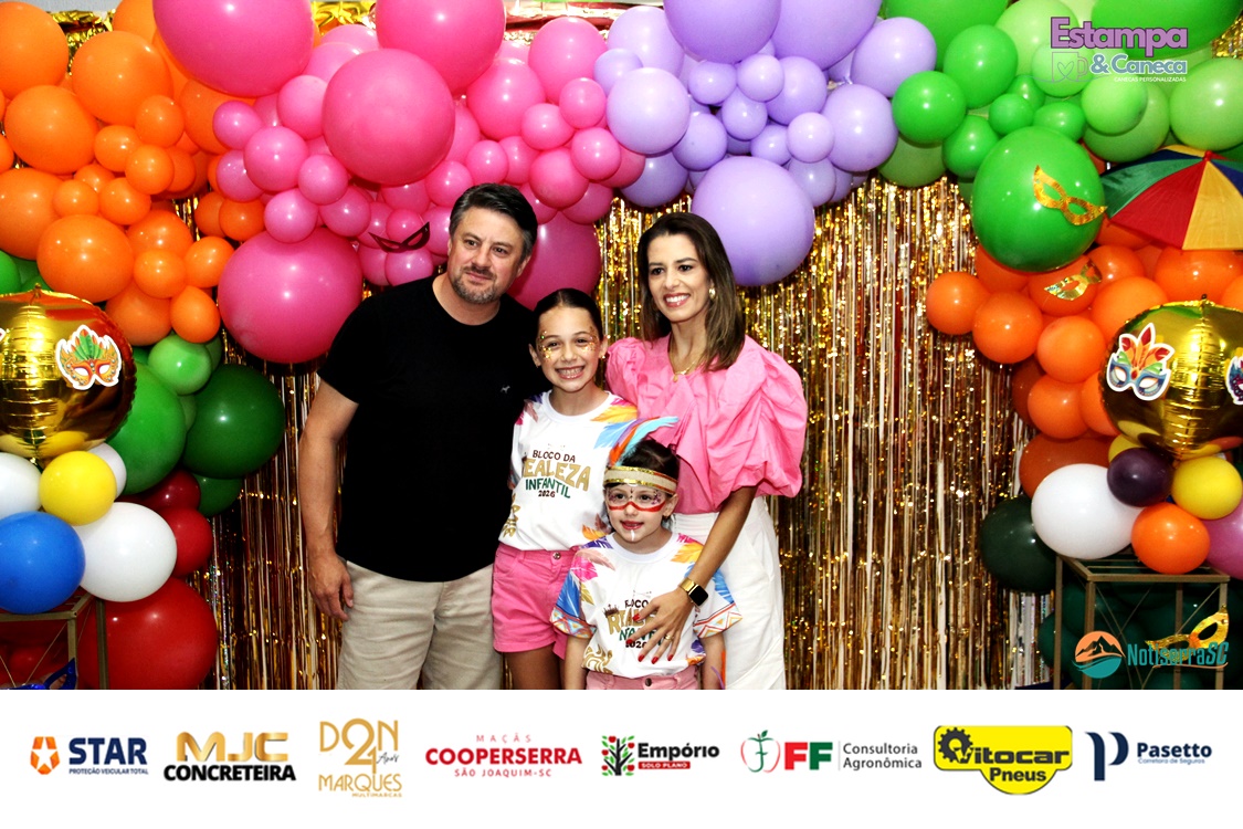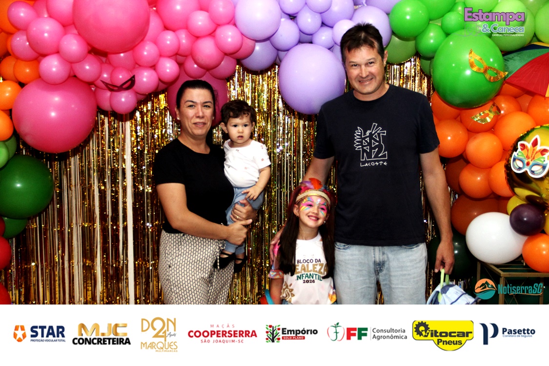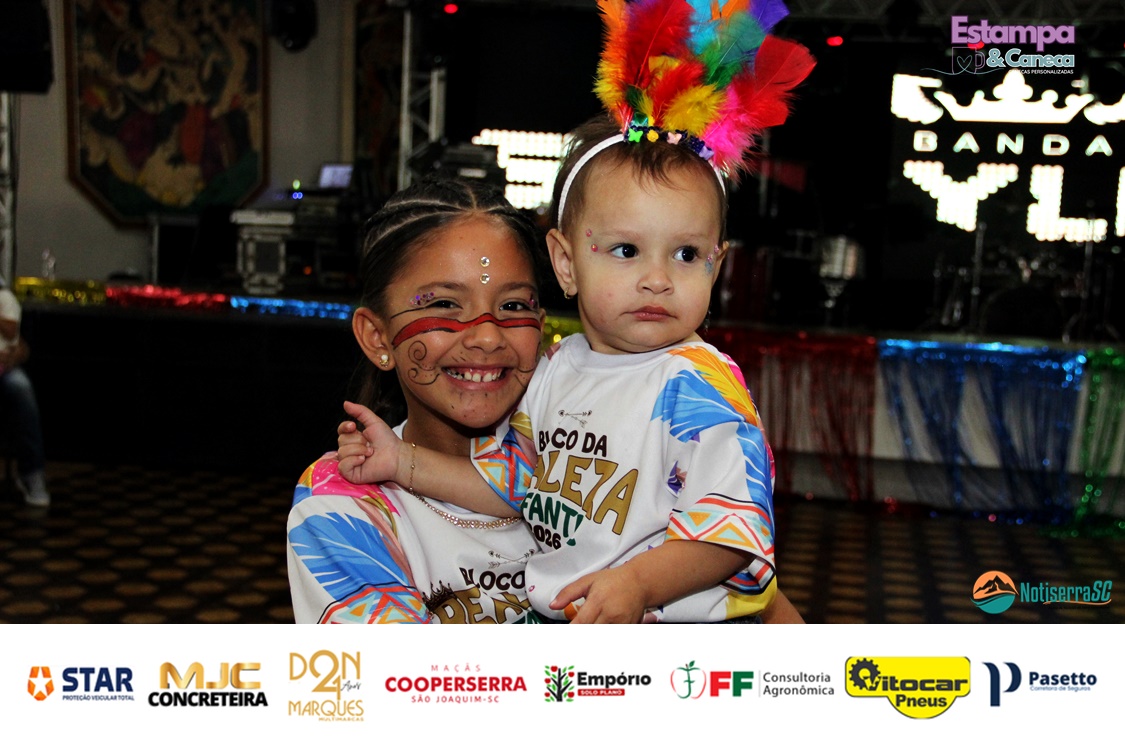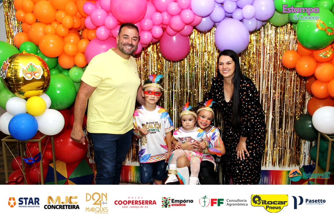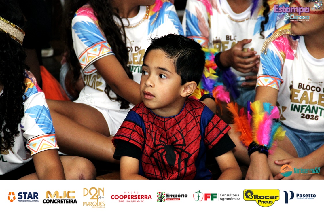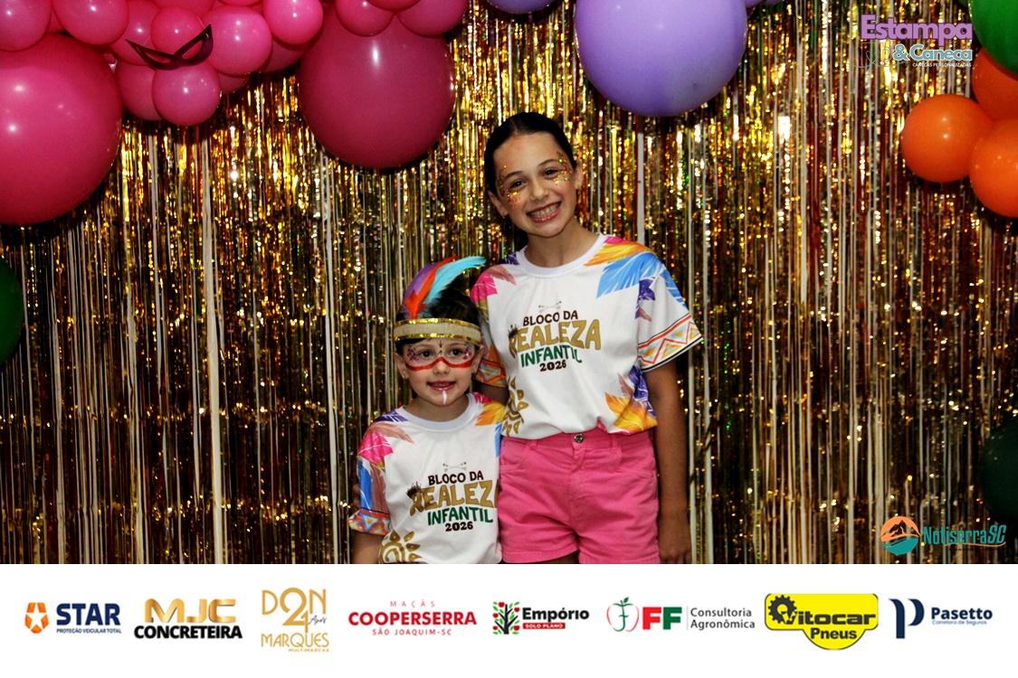 A Realeza Infantil do Carnaval 2026 também marcou presença, convidando as crianças para entrar no ritmo da festa. Ana Luisa e Enrico animaram o público com seus blocos, incentivando a participação dos pequenos foliões.