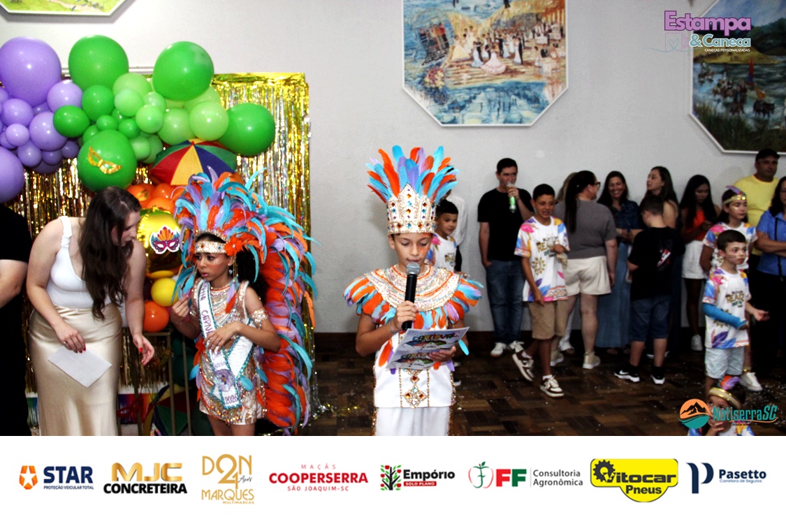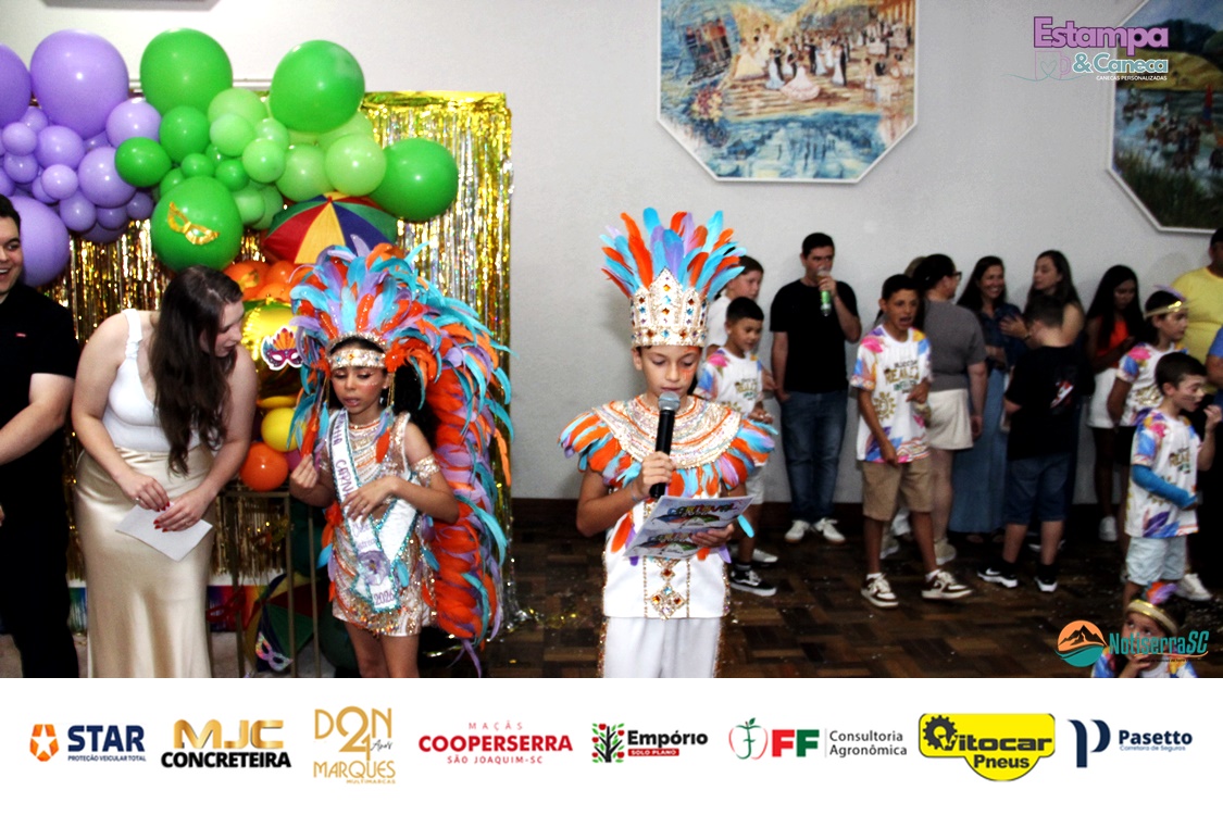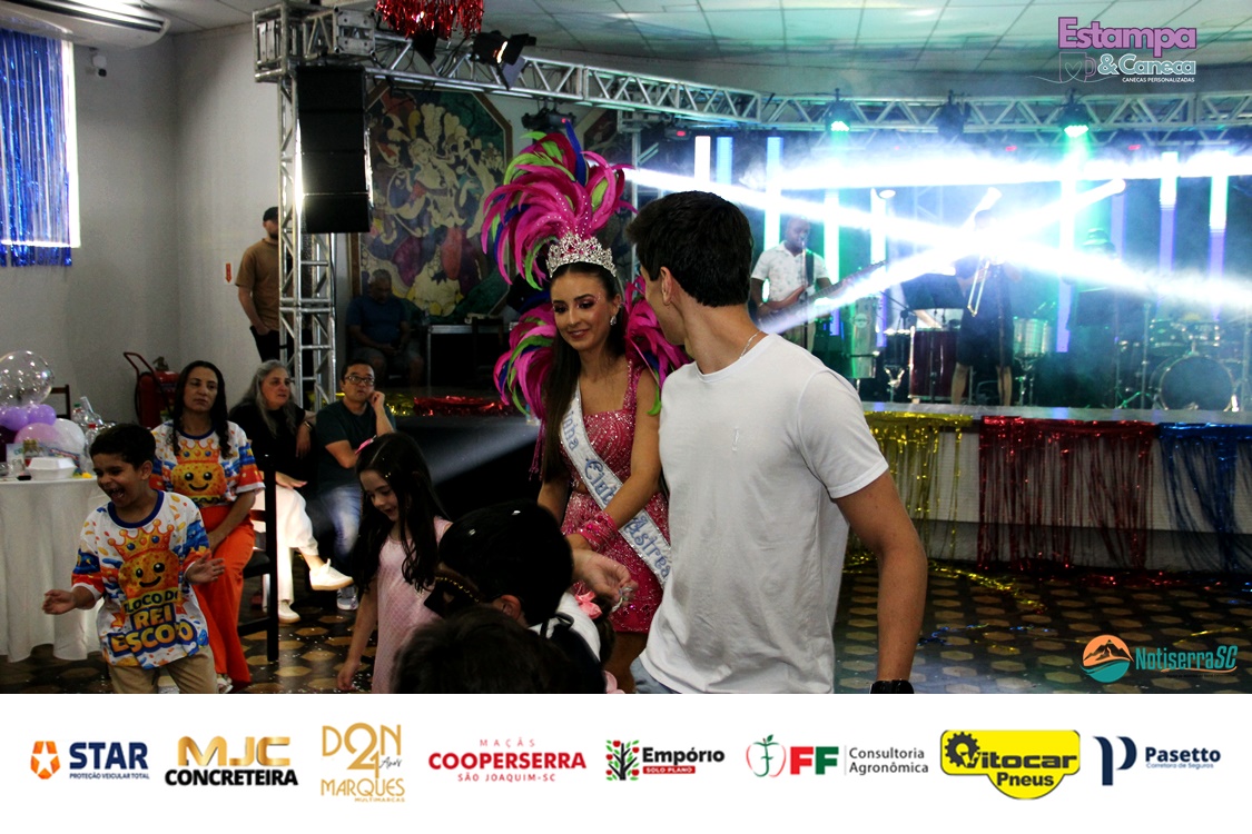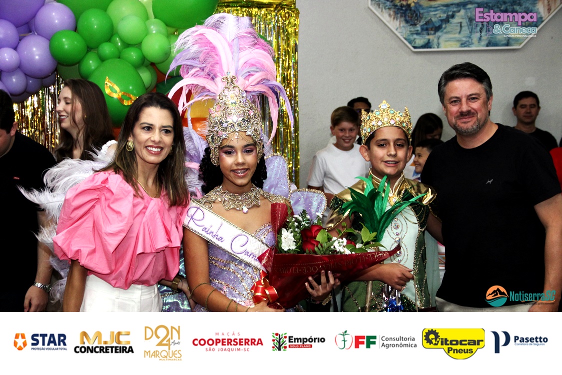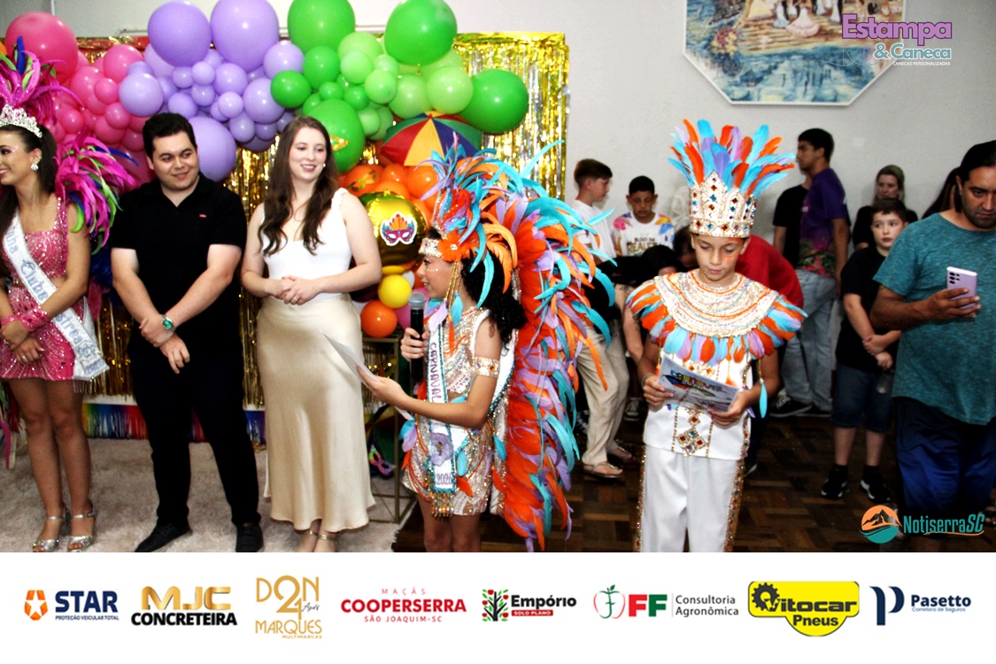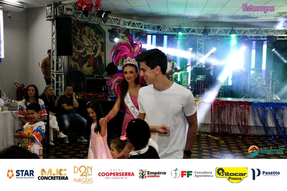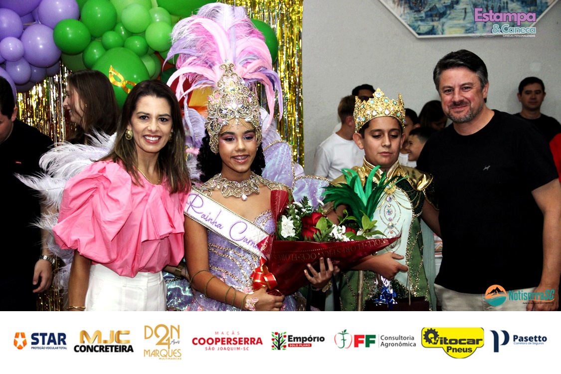 Durante o evento, a diretoria do clube anunciou ainda os nomes da nova realeza infantil para o Carnaval 2027. Foram escolhidos os pequenos Bernardo Zanette e Manuela Borges Fernandes de Liz, que passam a representar a tradição carnavalesca do clube no próximo ano.