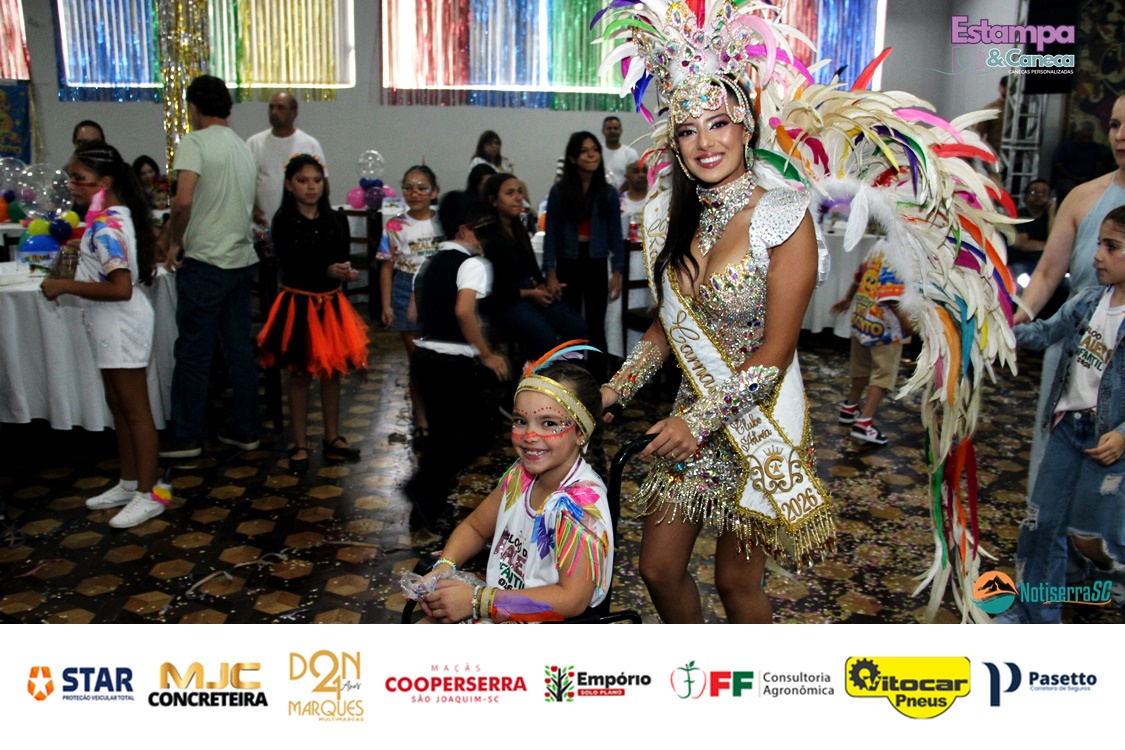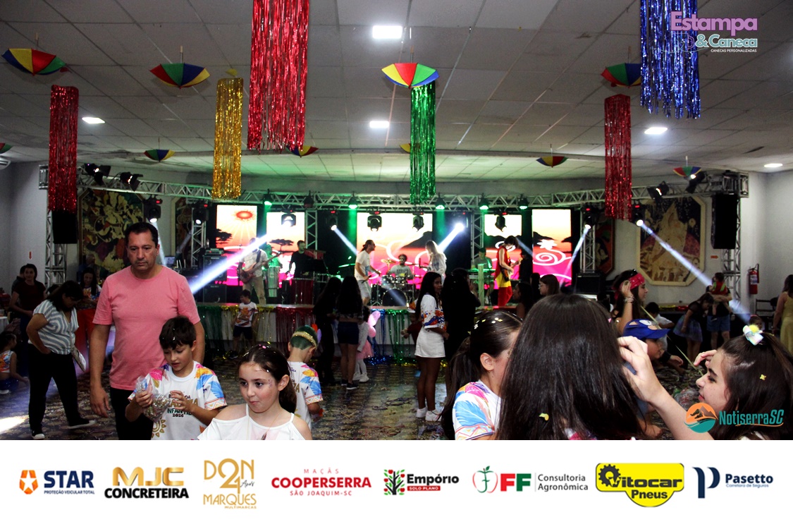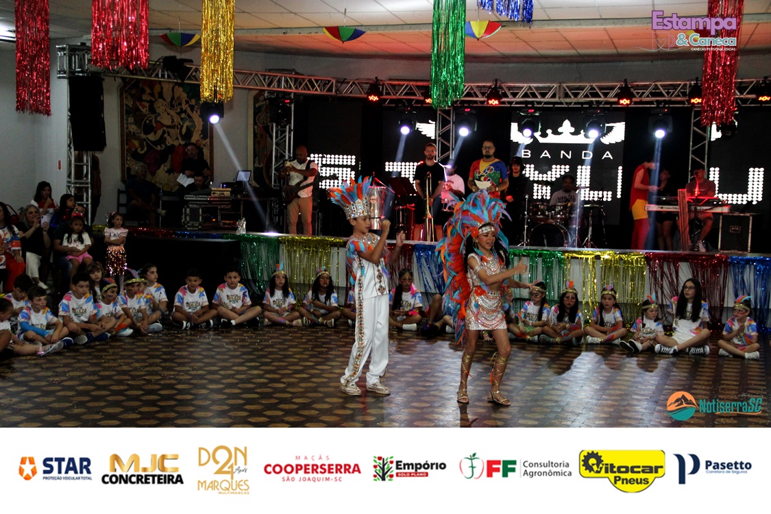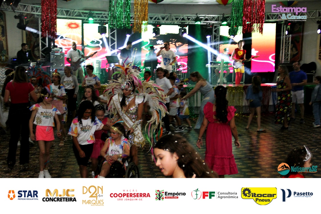 Com a animação da Banda Stylus, os pequenos foliões tomaram conta do salão, dançando e participando das atividades preparadas especialmente para o público infantil. Fantasias criativas e a energia contagiante garantiram o clima típico de Carnaval.