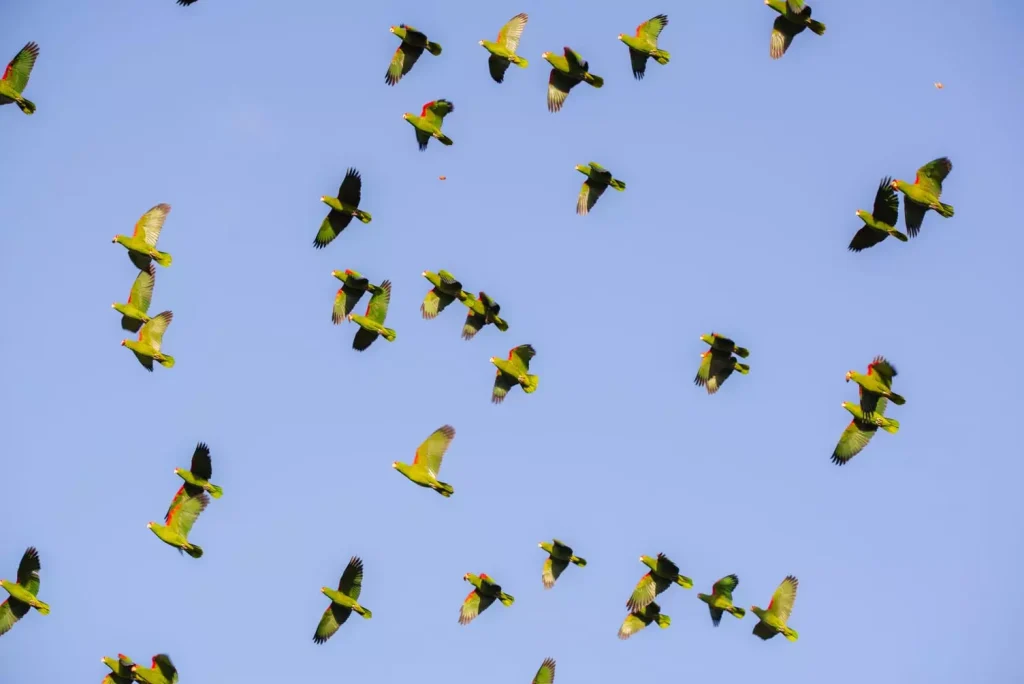 O charão é a única espécie de papagaio migratória do país, viajando do Rio Grande do Sul para a Serra Catarinense em busca das sementes do pinheiro-brasileiro.