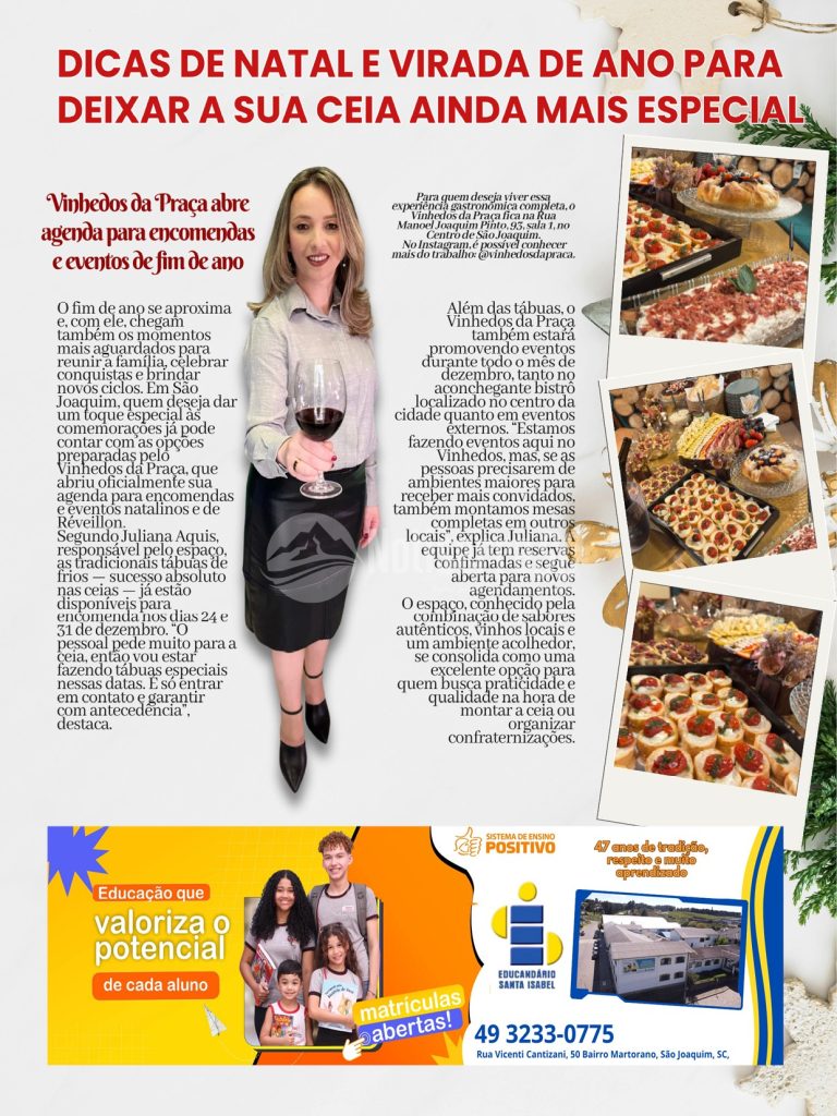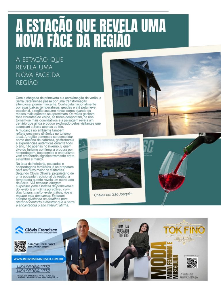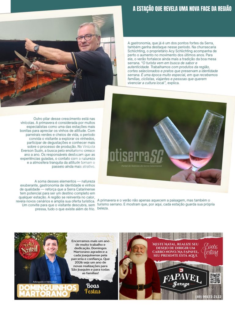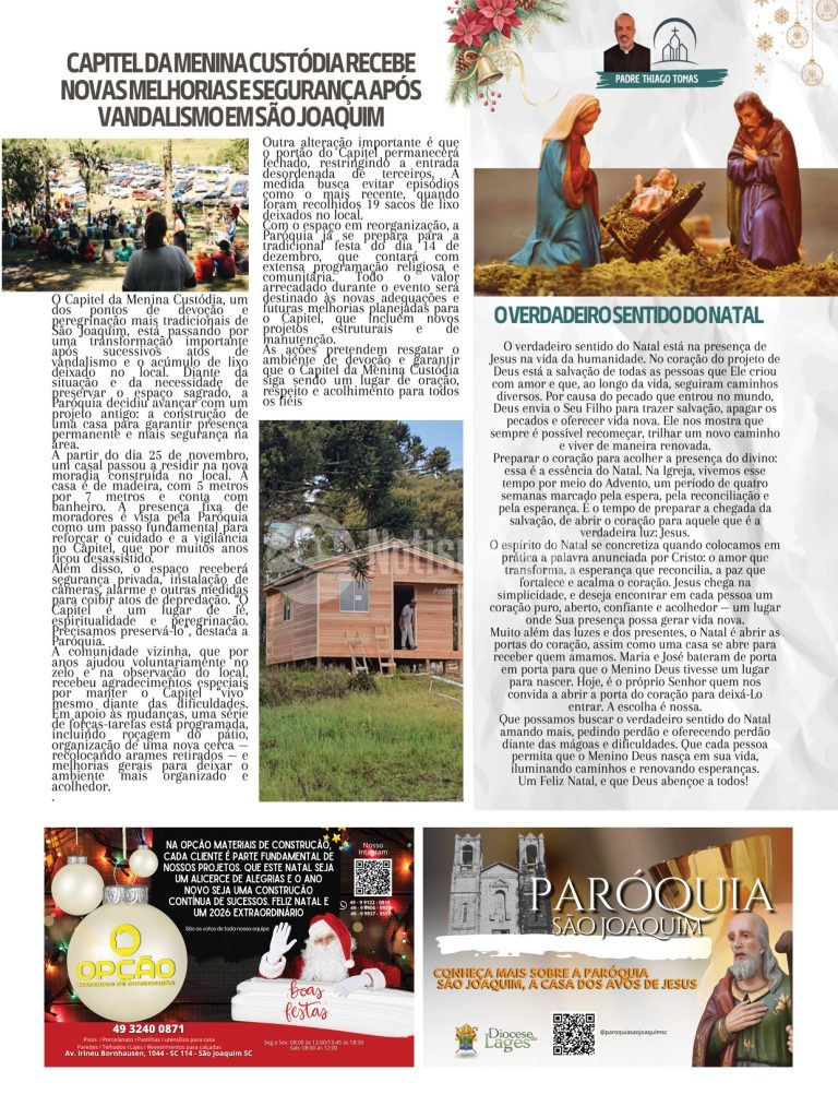 Nesta edição, os leitores encontram reportagens especiais que valorizam a região, destacam pessoas, histórias e tradições, além de temas que envolvem fé, cultura, gastronomia, economia e o cotidiano serrano. Um material pensado para informar, emocionar e celebrar o espírito natalino, mantendo o compromisso com o jornalismo regional de qualidade.