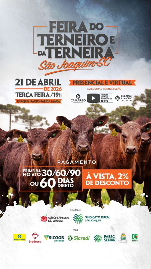 O Sindicato Rural de São Joaquim intensifica os preparativos para mais uma edição da tradicional Feira do Terneiro e da Terneira, que acontece no dia 21 de abril. Com mais de 40 anos de história, o evento já registra uma média de 400 animais inscritos, consolidando-se como um dos principais encontros do setor agropecuário da região.