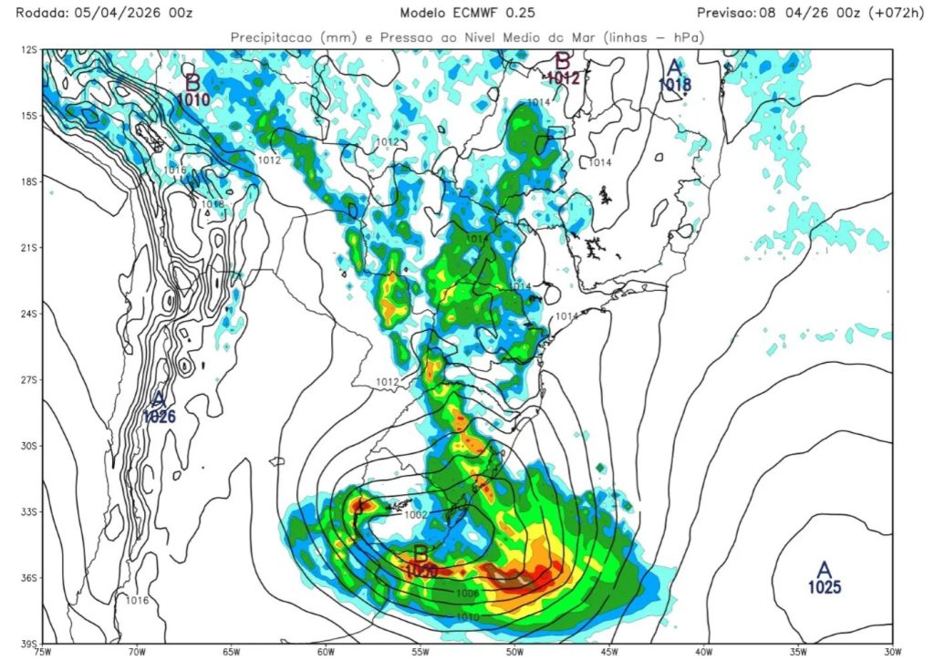 De acordo com a análise meteorológica, o avanço de um sistema de baixa pressão, conhecido como cavado, já favorece a formação de áreas de instabilidade sobre a Argentina, que começam a se deslocar em direção ao Sul do país. Em Santa Catarina, especialmente no Norte do estado, já foram registradas pancadas de chuva, algumas com forte intensidade, como na região de Blumenau.