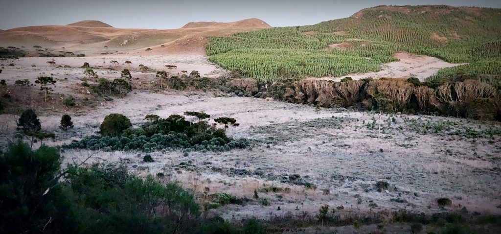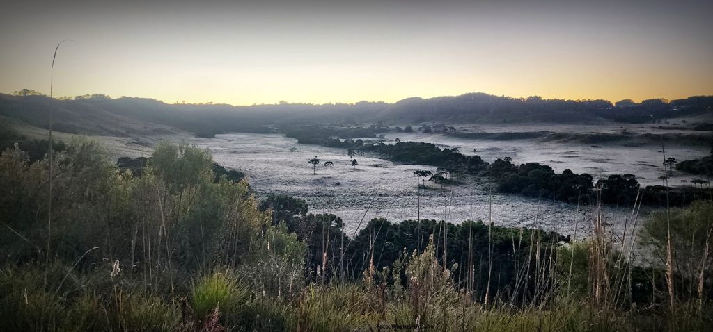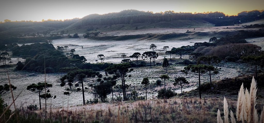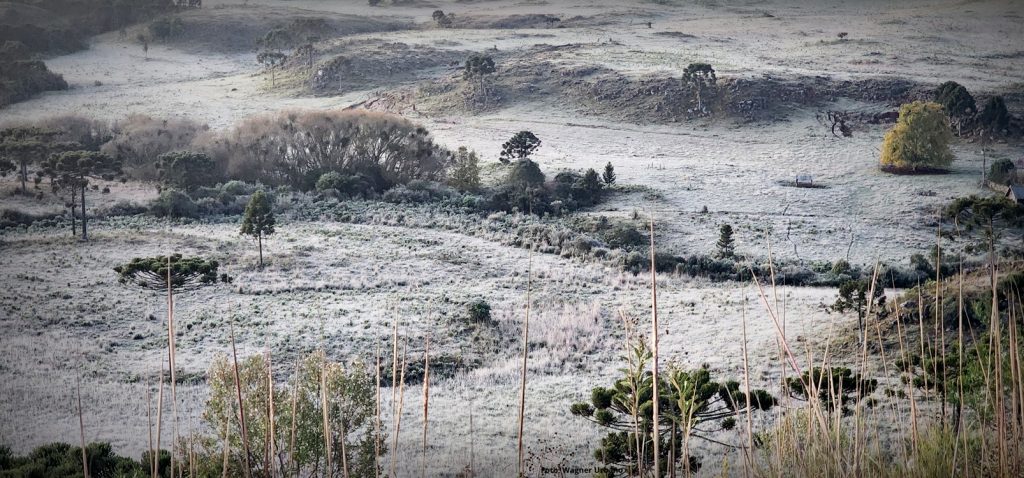 A atuação de uma intensa massa de ar frio derrubou as temperaturas na Serra Catarinense na madrugada e amanhecer desta terça-feira, 28 de abril, provocando geada ampla e registros negativos em diversas cidades da região.