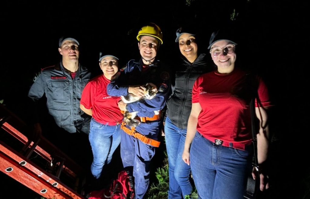 O bombeiro contou que precisou subir até o ponto onde o animal estava, mantendo a calma para não assustá-lo. “Ela estava bem tranquila. No começo subiu um pouco mais, mas depois foi se acalmando. Fui conversando com ela e consegui pegar e resgatar.”