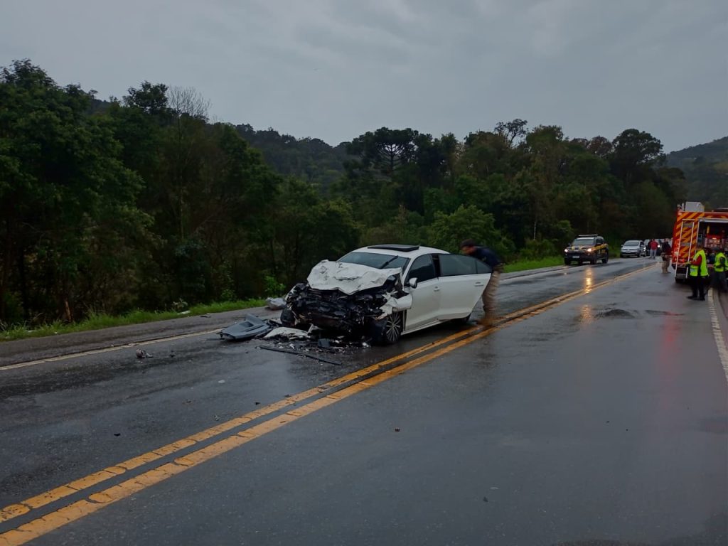 Um grave acidente foi registrado na tarde deste domingo (12) na BR-282, no município de Bom Retiro, região Serrana de Santa Catarina. A colisão frontal envolveu dois veículos e resultou em duas mortes confirmadas no local.