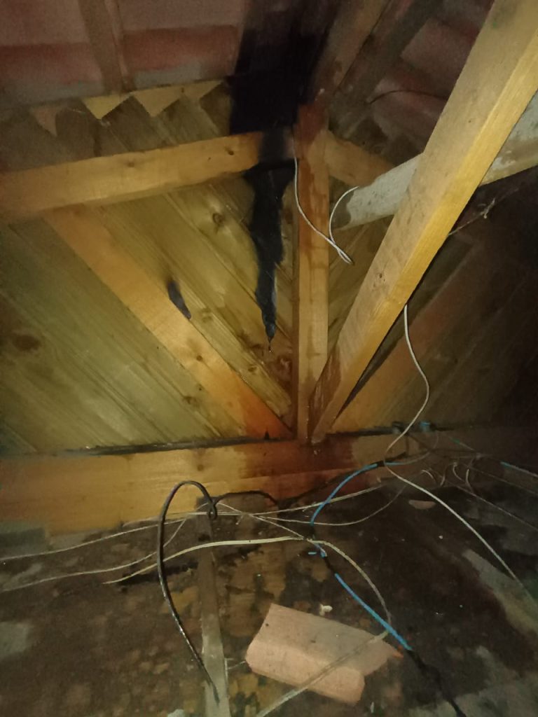 Ao chegarem ao endereço informado, os bombeiros confirmaram a natureza da ocorrência, porém o princípio de incêndio já havia sido controlado pelo próprio proprietário da residência. Com o apoio da filha, o morador utilizou potes e garrafas de água para conter as chamas que atingiram a fiação elétrica responsável por alimentar um holofote na parte externa da casa. O acesso ao foco do incêndio foi possível pelo forro da residência.