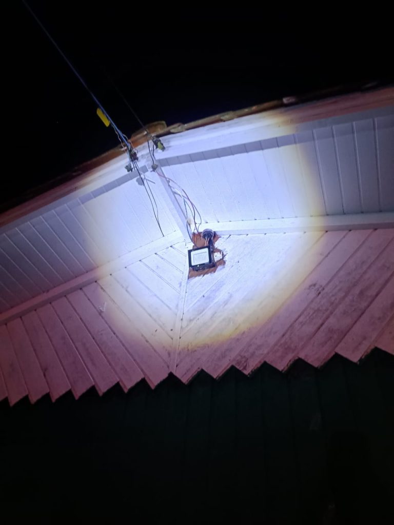 Ao chegarem ao endereço informado, os bombeiros confirmaram a natureza da ocorrência, porém o princípio de incêndio já havia sido controlado pelo próprio proprietário da residência. Com o apoio da filha, o morador utilizou potes e garrafas de água para conter as chamas que atingiram a fiação elétrica responsável por alimentar um holofote na parte externa da casa. O acesso ao foco do incêndio foi possível pelo forro da residência.