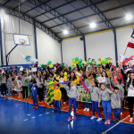 A solenidade de abertura foi marcada por momentos emocionantes, como o acendimento da pira olímpica, o juramento dos atletas e o hasteamento das bandeiras. Alunos da escola desfilaram pela quadra exibindo os troféus que serão disputados nas competições, trazendo um clima de entusiasmo e espírito esportivo.