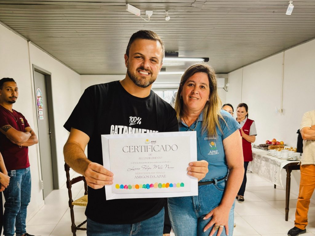 Durante a cerimônia, Lucas Neves foi homenageado com o título de “Amigo da APAE”. O reconhecimento teve caráter simbólico e foi marcado pela digital dos alunos da instituição, carimbada no certificado entregue ao deputado. Emocionado, o parlamentar destacou a importância do trabalho desenvolvido pelas APAEs e reafirmou o compromisso do mandato com políticas de inclusão.