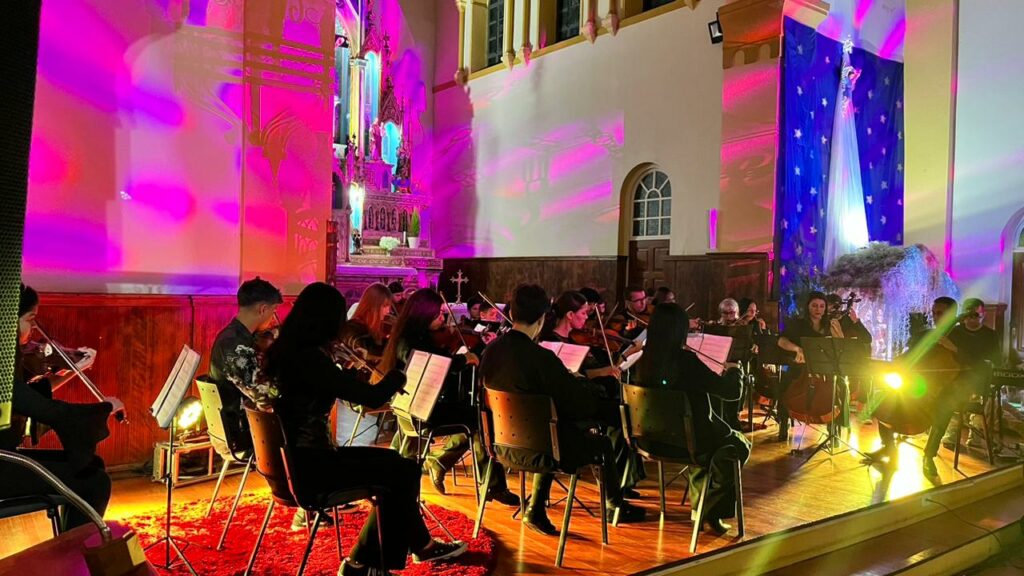 Na noite mágica de 10 de dezembro, a igreja Matriz de São Joaquim foi o palco de uma celebração única e emocionante: a apresentação da Orquestra Municipal Especial de Natal. O evento, integrante do Natal Luzes de Joaquim, foi possível graças à parceria entre a Prefeitura Municipal de São Joaquim, a Secretaria Municipal de Turismo, a Secretaria Municipal de Educação Cultura e Desporto, a Escola de Arte Cultura Dança e Música, a Igreja Matriz e músicos convidados.
