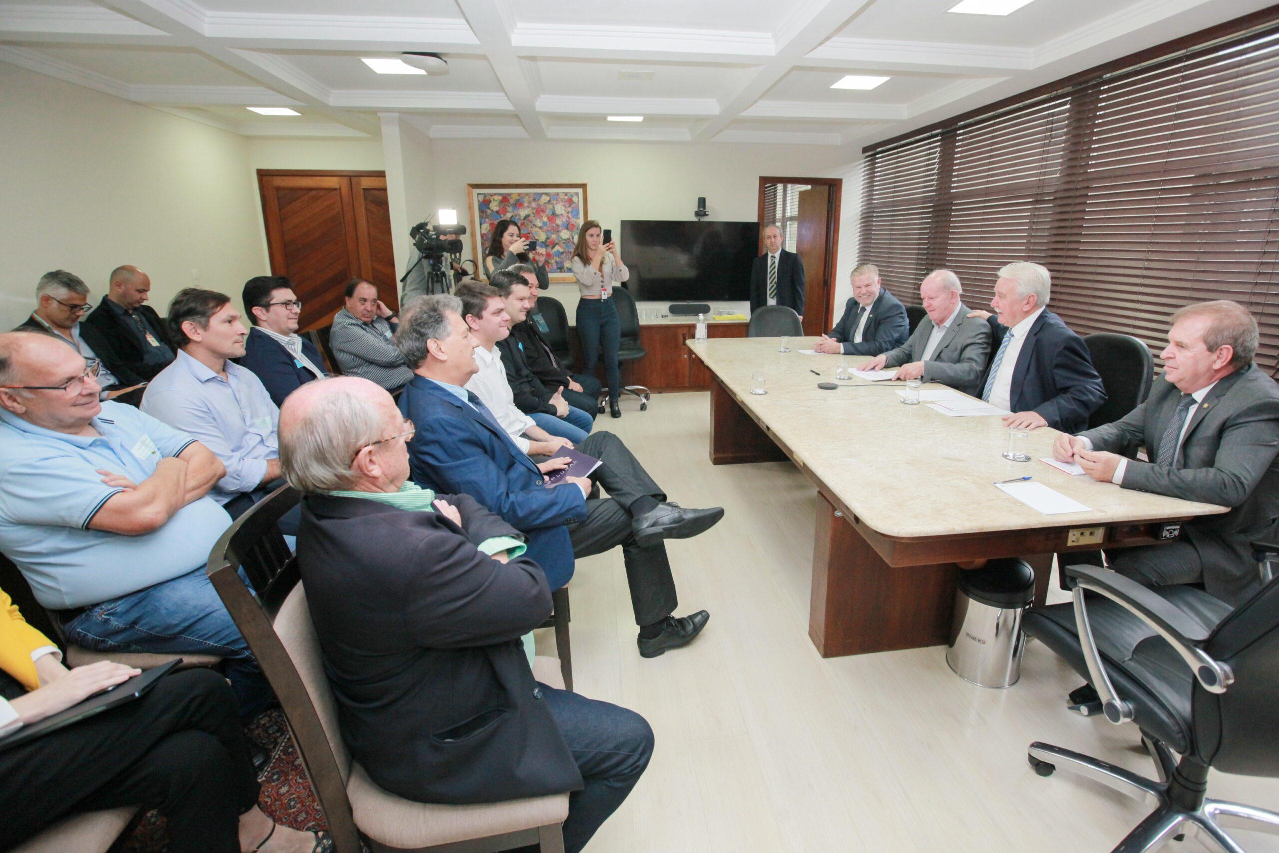Em nova reunião entre a Assembleia Legislativa e representantes de revendedoras de combustíveis de Santa Catarina, nesta terça-feira (12), o presidente do Parlamento, deputado Moacir Sopelsa (MDB), reiterou a importância de se fortalecer o diálogo entre a categoria e o governo do Estado. No início do mês passado, representantes do setor estiveram na Assembleia Legislativa pedindo o apoio dos deputados para a resolução do impasse entre os revendedores e o Executivo. Os empresários pedem que o governo reveja a decisão tomada no início deste ano de cobrar a diferença do ICMS sobre o preço de pauta – Preço Médio Ponderado ao Consumidor Final (PMPF), valor para a base de cálculo do ICMS do estado – e o preço cobrado na bomba.