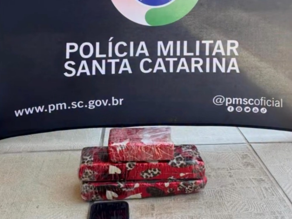 No entanto, ao realizar a revista no interior do veículo, os policiais localizaram uma bolsa contendo três tabletes de maconha, que juntos totalizaram 1,950 quilo da substância.