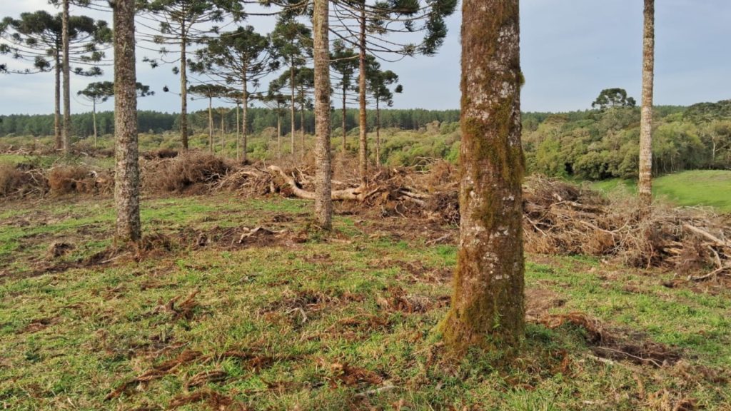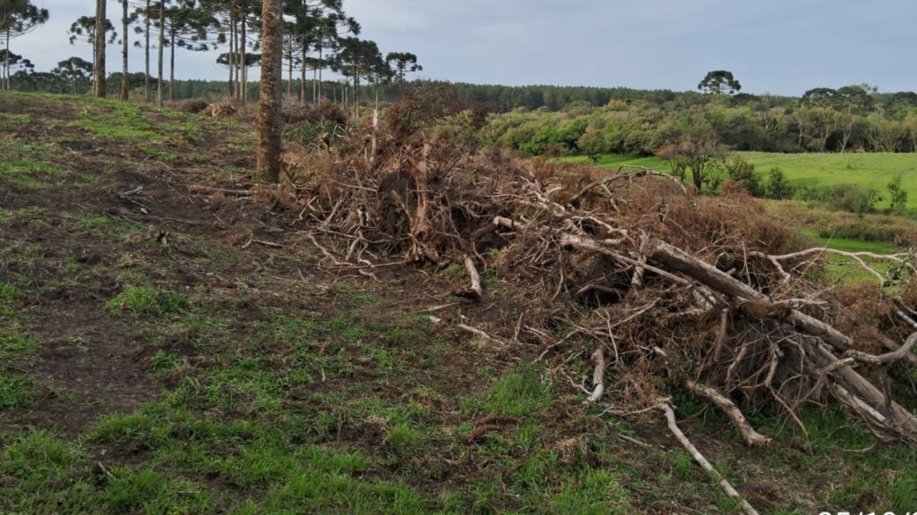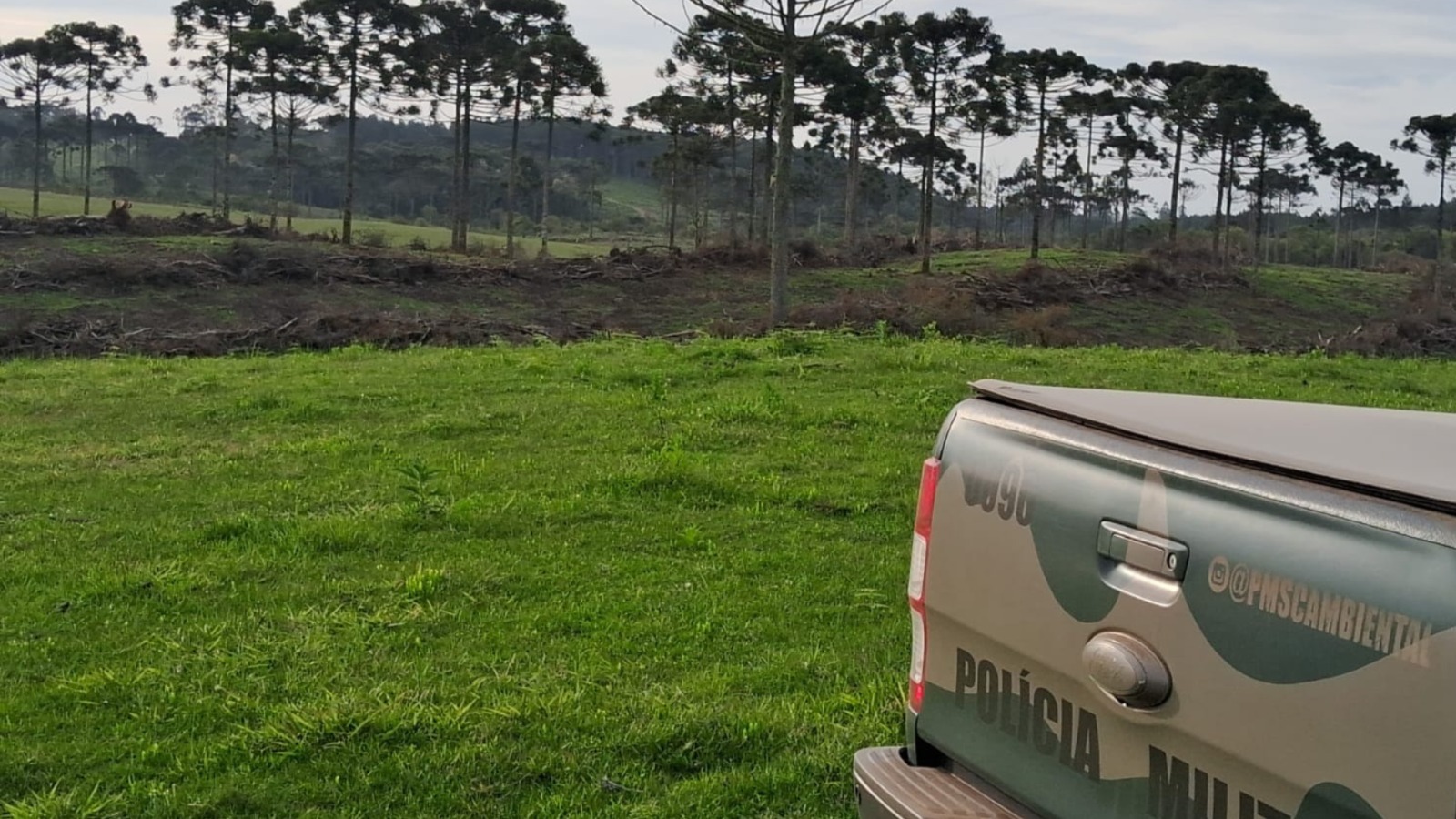 A Polícia Militar de Santa Catarina (PMSC), por meio do Comando de Polícia Militar Ambiental (CPMA), atendeu neste sábado, 25, uma ocorrência de desmatamento ilegal na localidade de Rancho de Tábuas, interior do município de Lages/SC, após denúncia encaminhada à corporação.