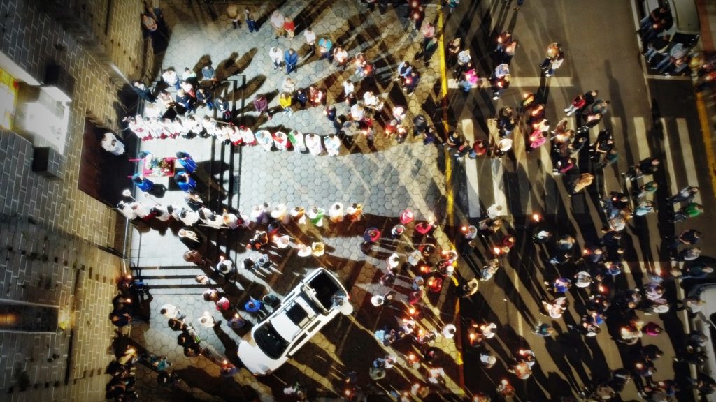 Após a cerimônia na Santa Cruz, os fiéis retornaram à Igreja Matriz em nova procissão, acompanhando a imagem da Virgem Maria, em um clima de respeito, silêncio e devoção.