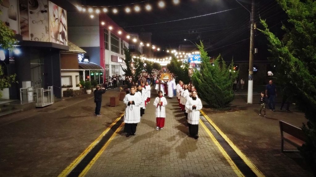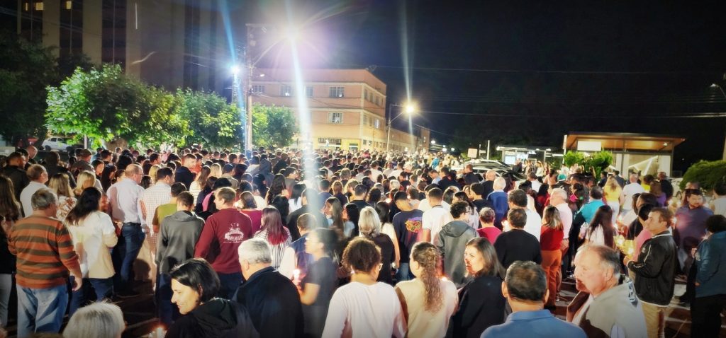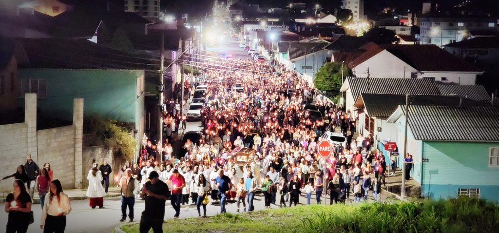Na noite do dia 3, fiéis participaram da tradicional procissão de Sexta-feira Santa em São Joaquim, um dos momentos mais significativos da programação religiosa da Semana Santa no município.