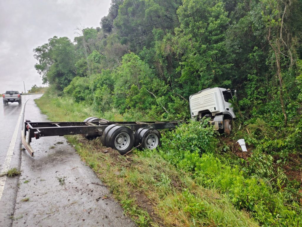Um acidente de trânsito registrado na manhã desta terça-feira (9), por volta das 7h20, deixou apenas danos materiais na SC-114, km 243,900, no município de Painel. De acordo com informações da Polícia Militar Rodoviária (PMRv), um caminhão M. Benz/Atego 2430, com placas de Concórdia, saiu da pista e colidiu contra um barranco.