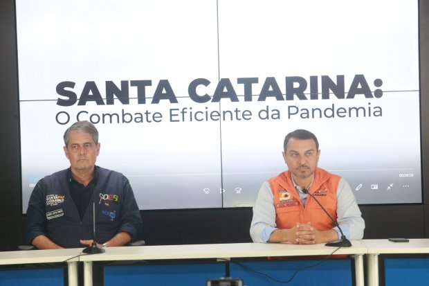 Antes do início da coletiva, o governador pediu a todos os presentes que prestassem 1 minuto de silêncio em homenagem às vítimas da pandemia em Santa Catarina, no Brasil e no mundo.