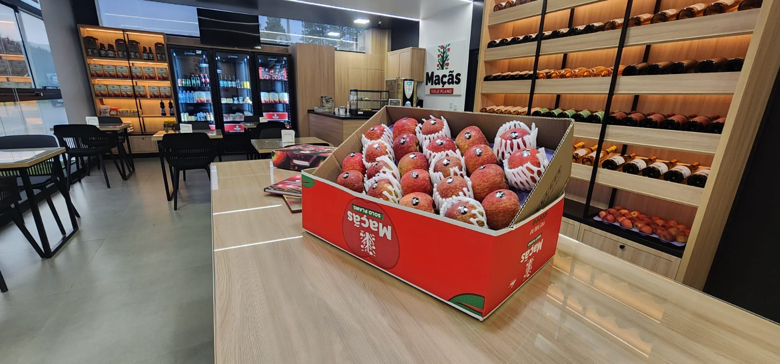 No cardápio, os visitantes também encontram sucos de maçã, cafés especiais e tábuas de frios, ideais para apreciar o clima acolhedor da cidade. Cada detalhe do Empório Maçãs Solo Plano foi pensado para proporcionar uma experiência completa — unindo sabor, cultura e hospitalidade.